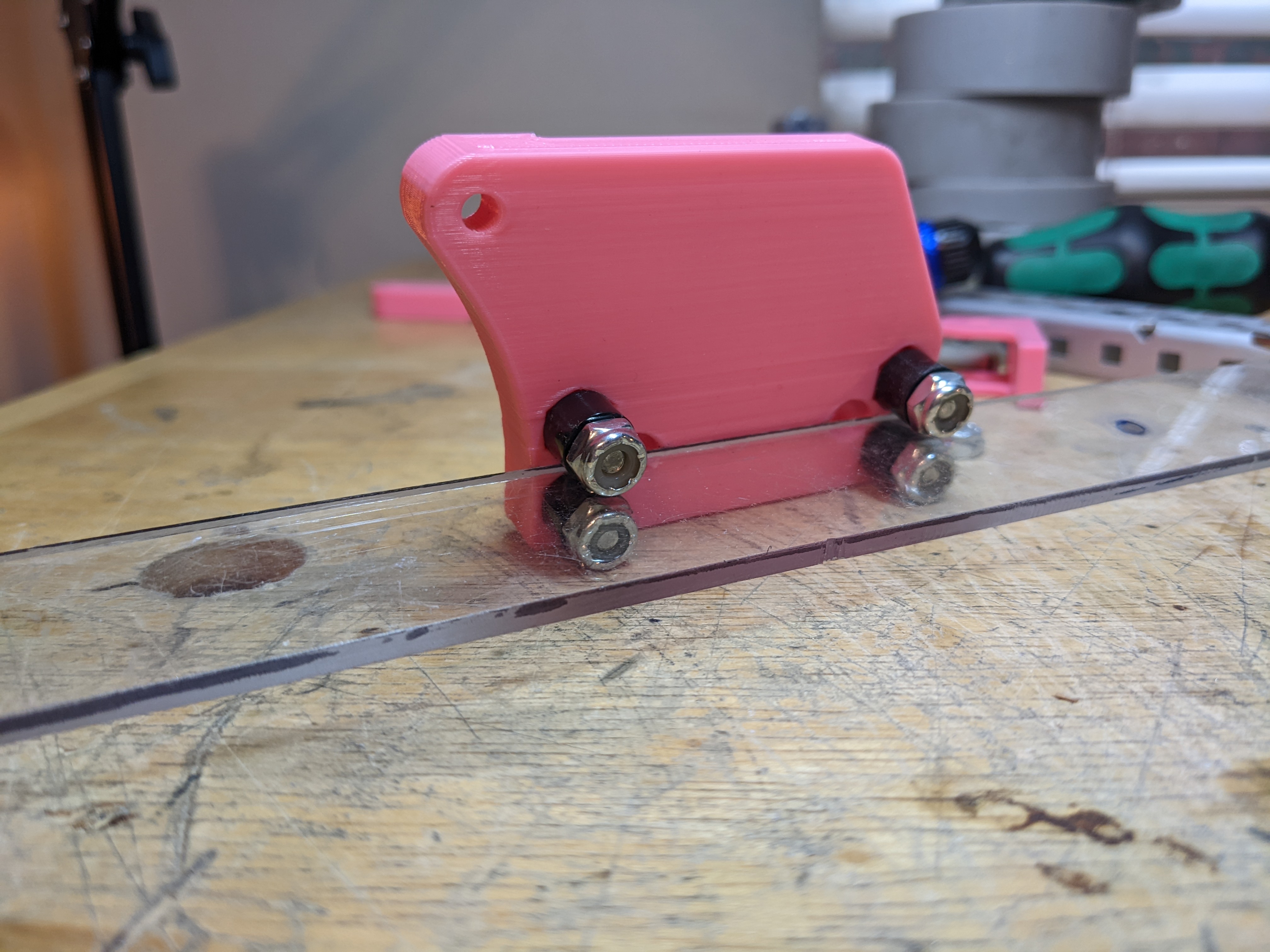 My first attempt at solving this was to just screw a piece of plastic over the 3D print, so the plastic was contacting instead of the print.