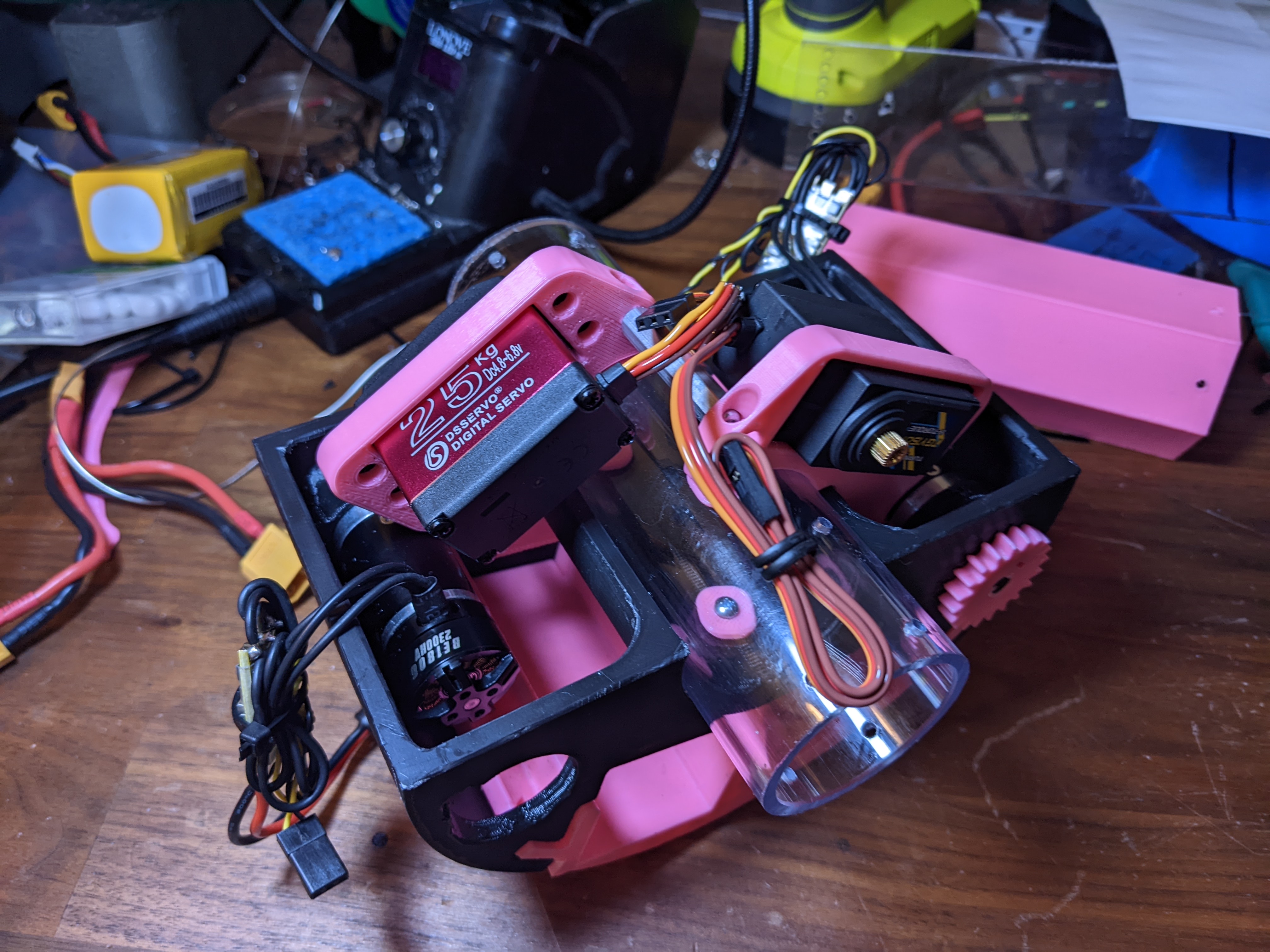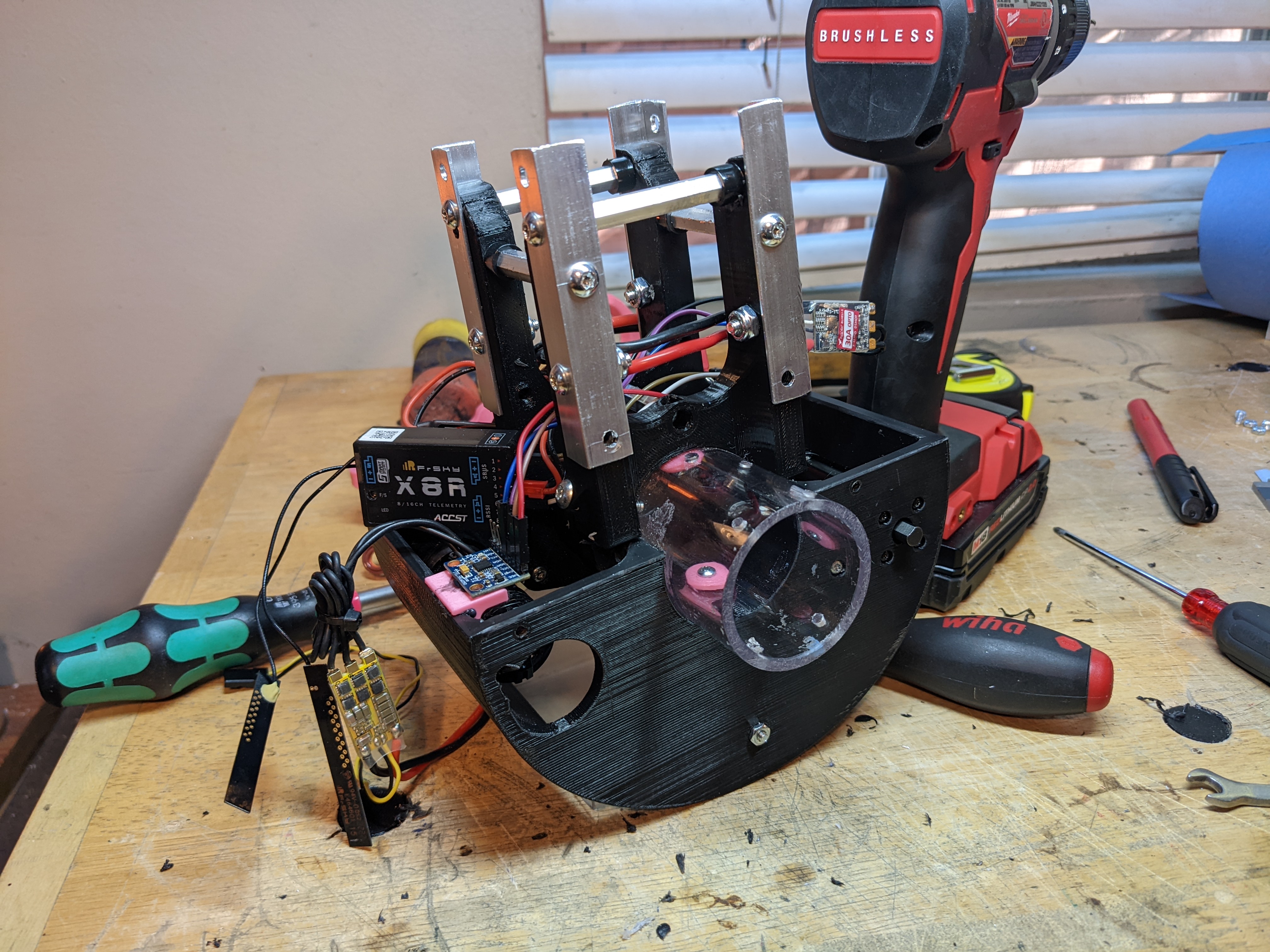 I wired the battery to the ESC and plugged it into the x8r and got the motors to spin. At this point, I realized how overkill my motors are for the size of this setup...
