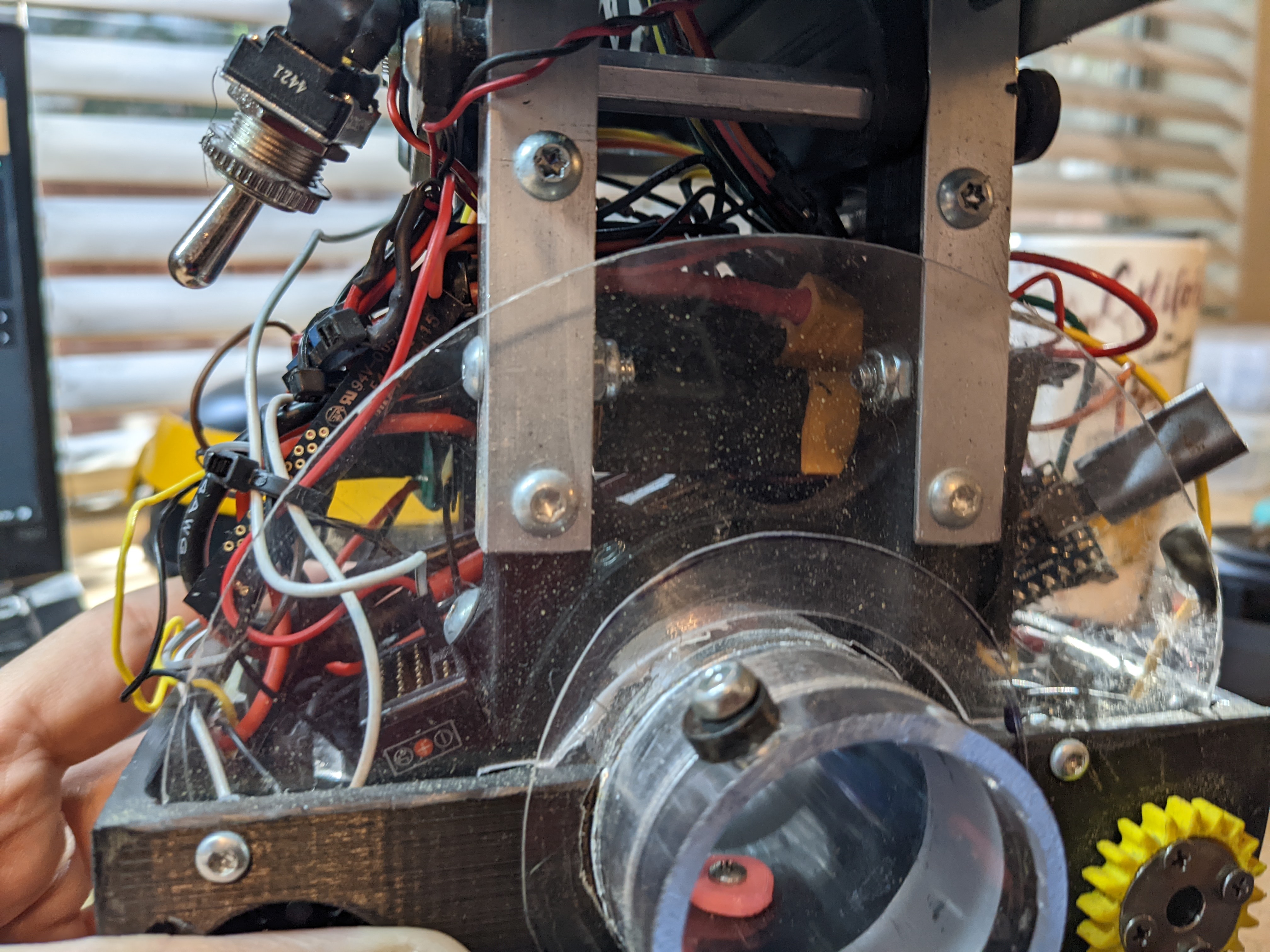 I didn't work on this project for ~3 weeks after it ate my finger. The next time I was running it, I needed to implement safeties to stop something like that from happening.