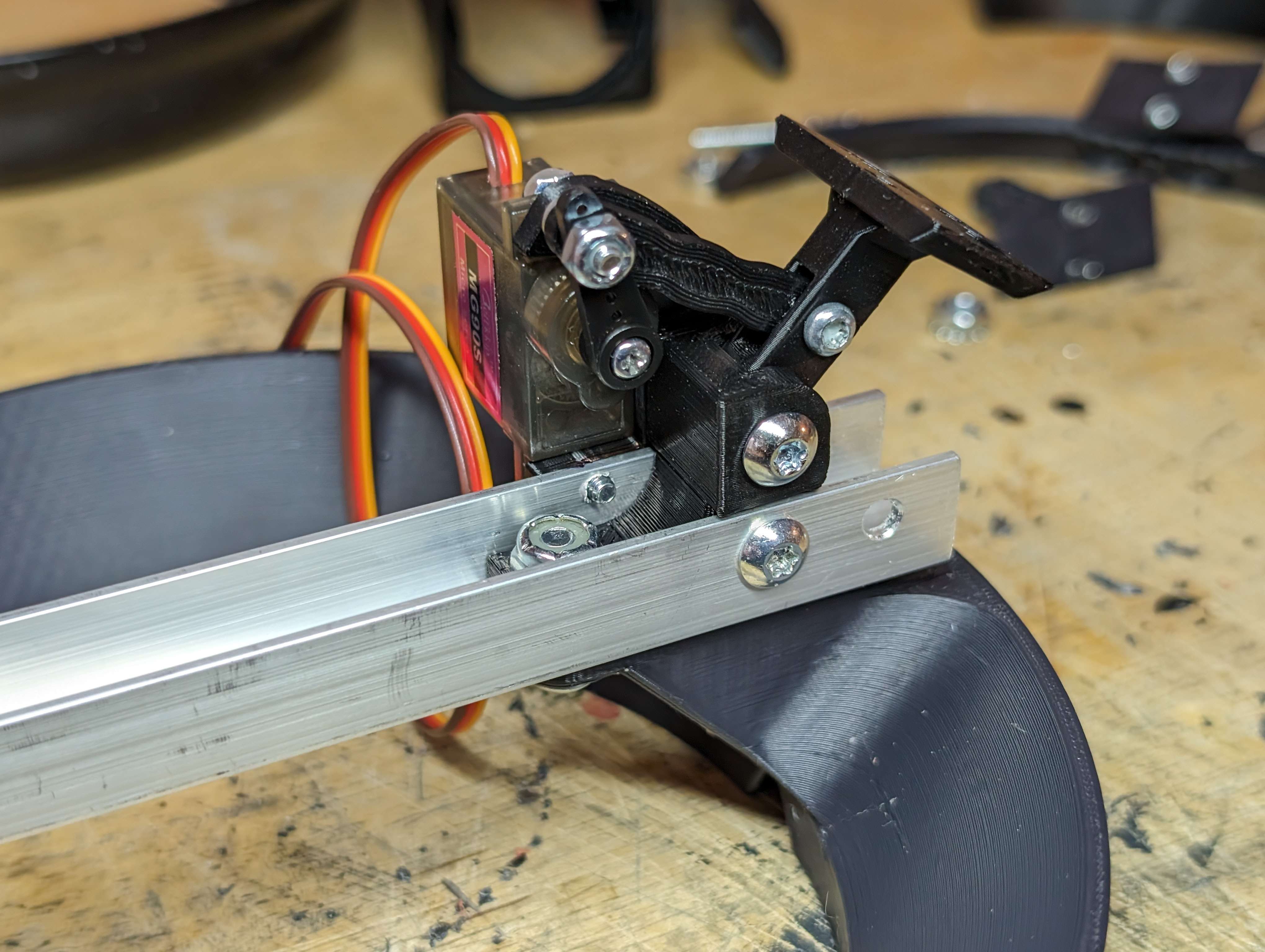 I got both servo mounts replaced with the new horseshoe pieces and got all 4 pieces of angle on. I have screws going through in multiple axes and have standoffs going between everything to make sure it stays square.