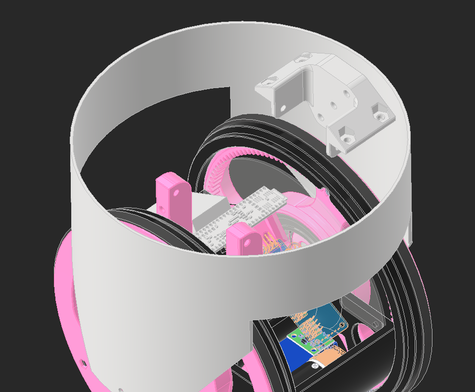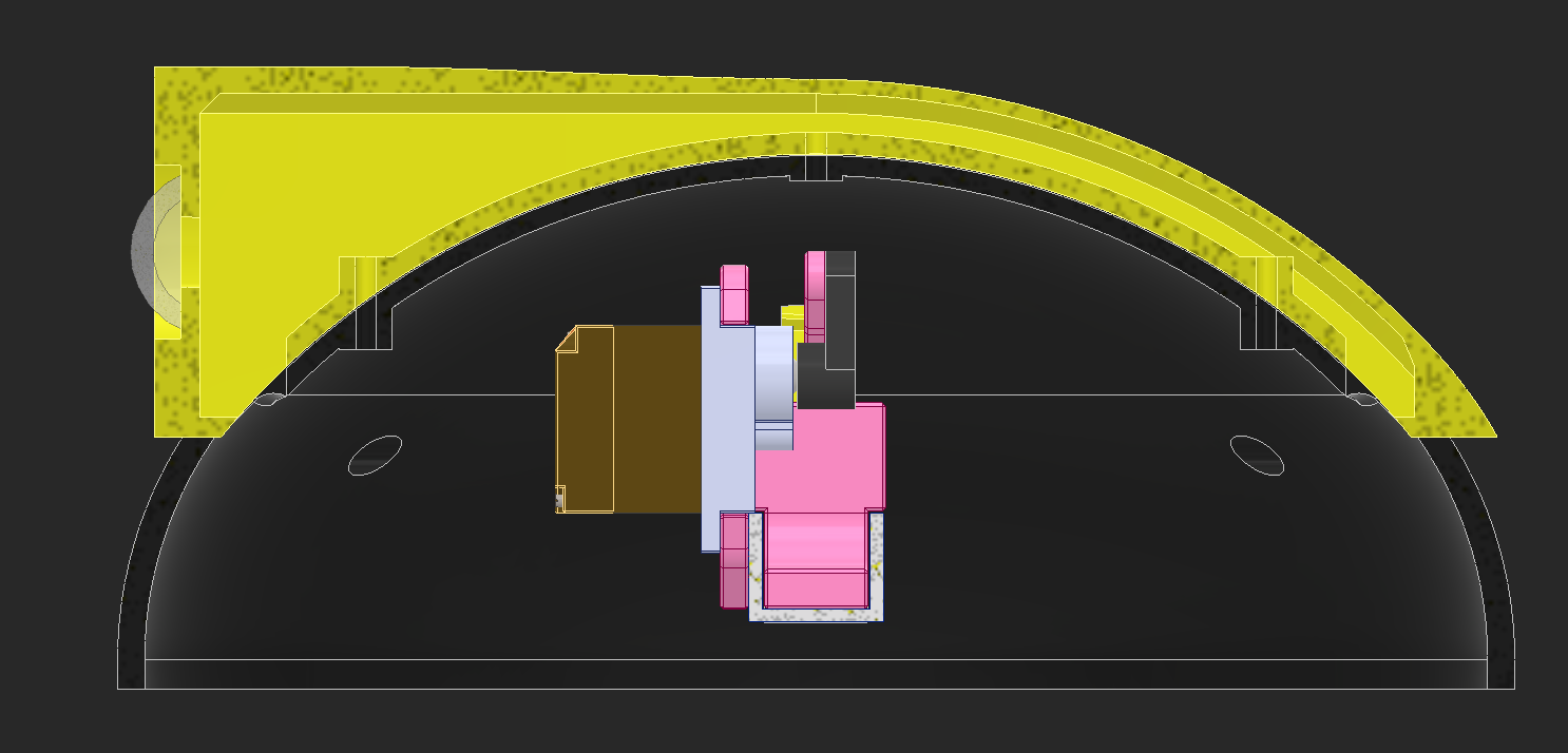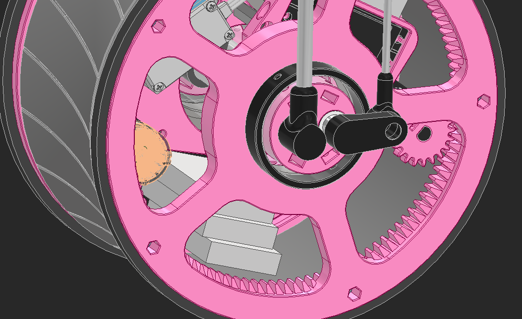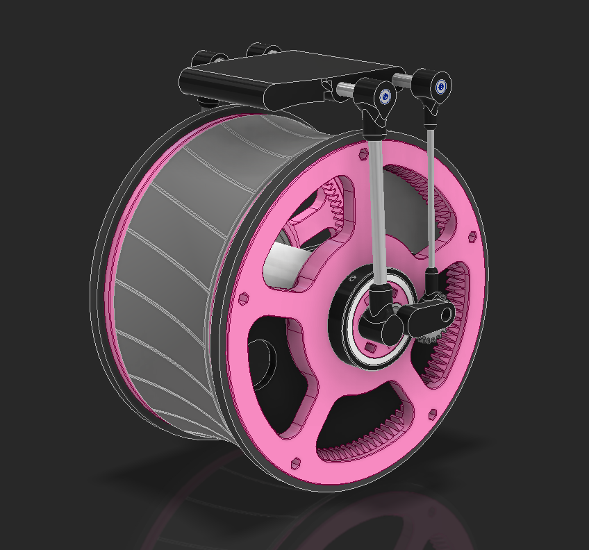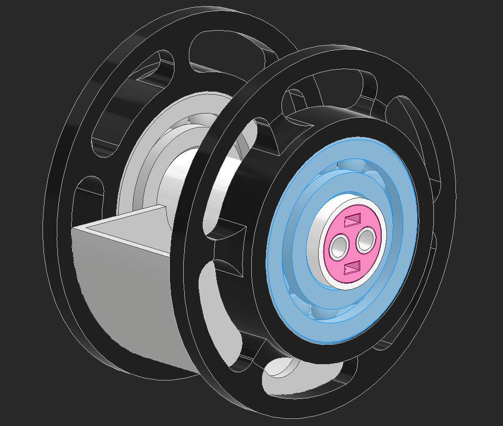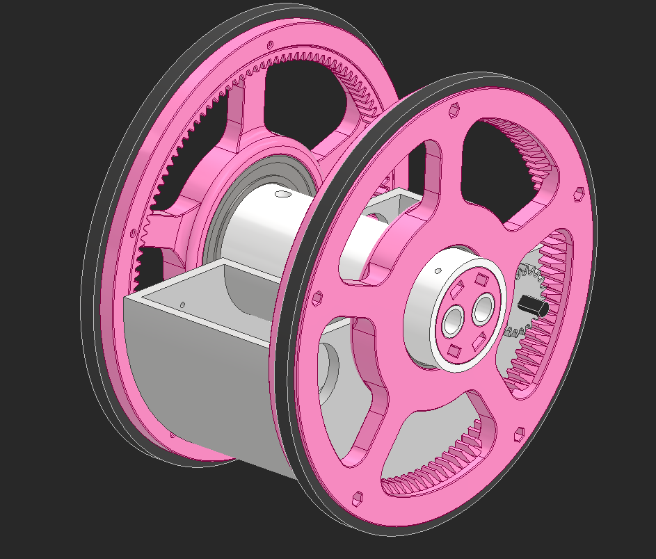 I found a ball bearing with 85mm OD, but after putting it in CAD it's clear how massive and heavy this bearing will be. The pink pieces hold bushings that will hold the axles that run across the robot to power the head.