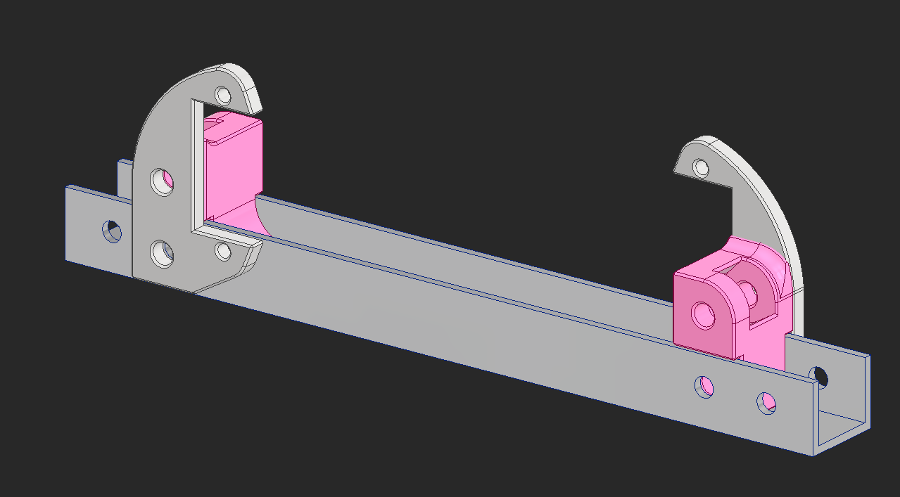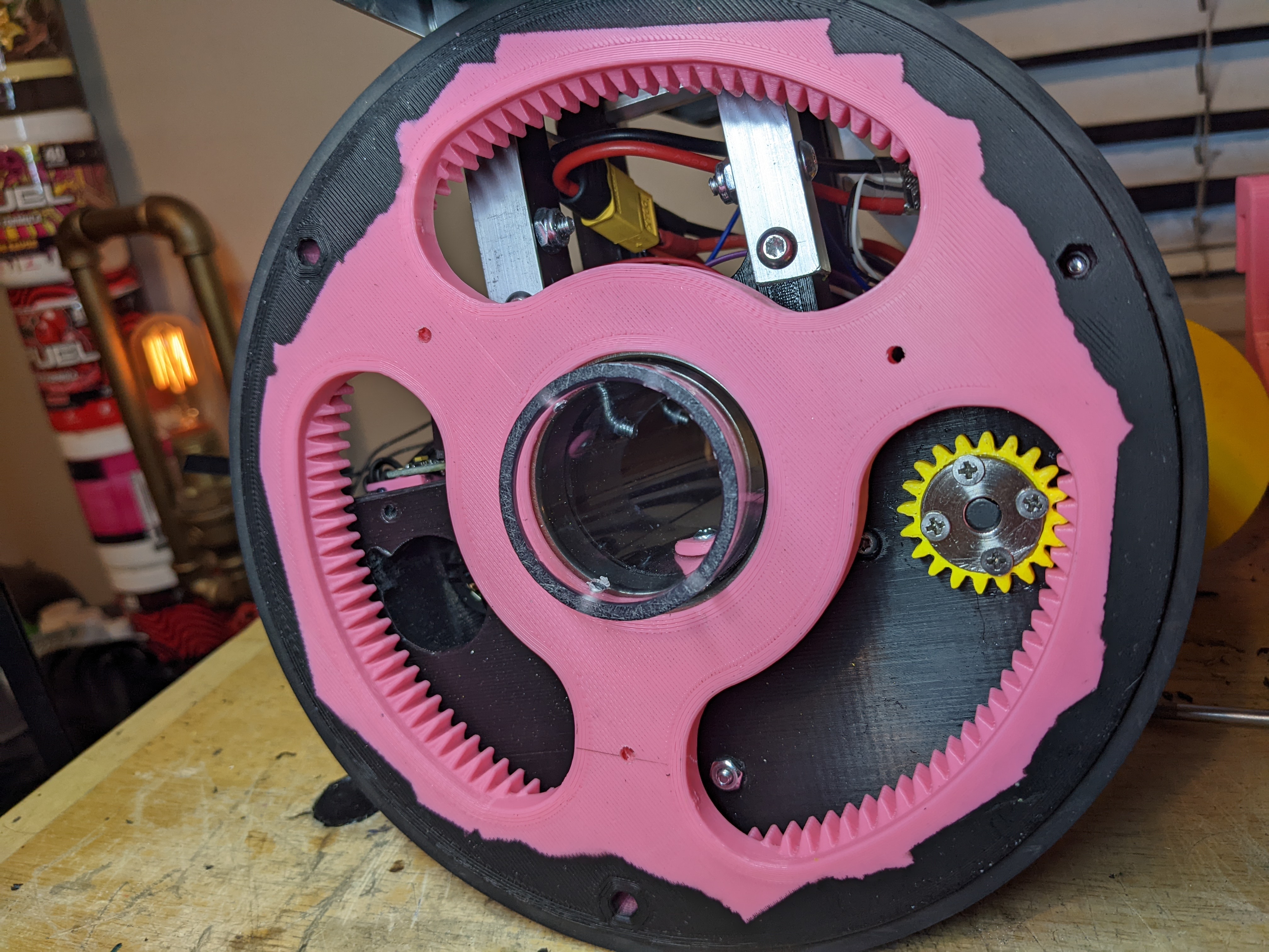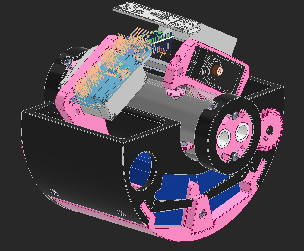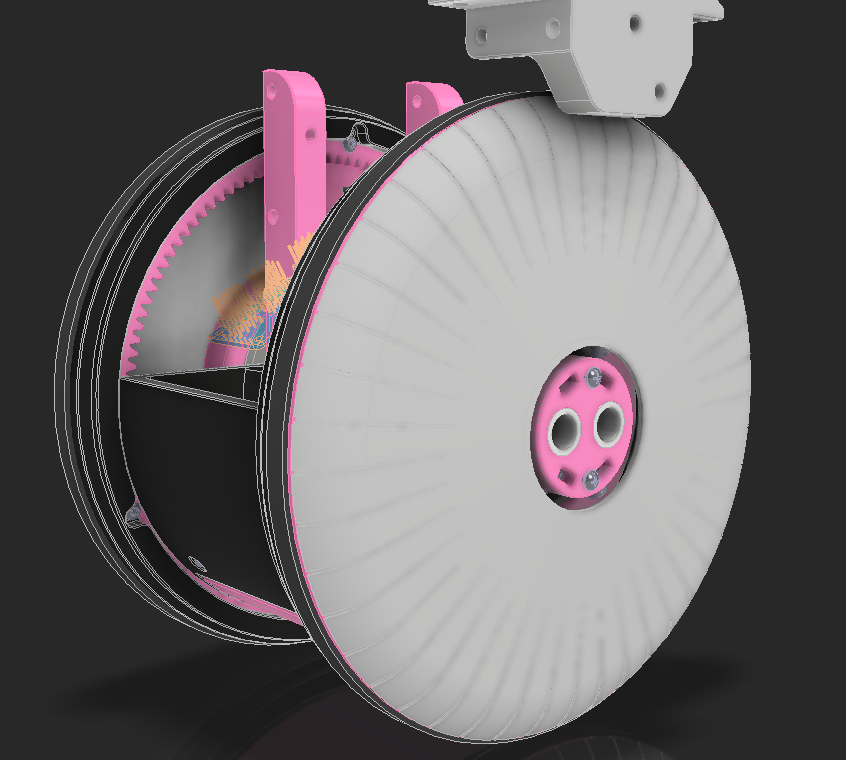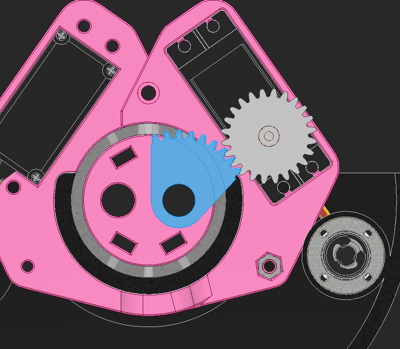 I found a ball bearing with 85mm OD, but after putting it in CAD it's clear how massive and heavy this bearing will be. The pink pieces hold bushings that will hold the axles that run across the robot to power the head.