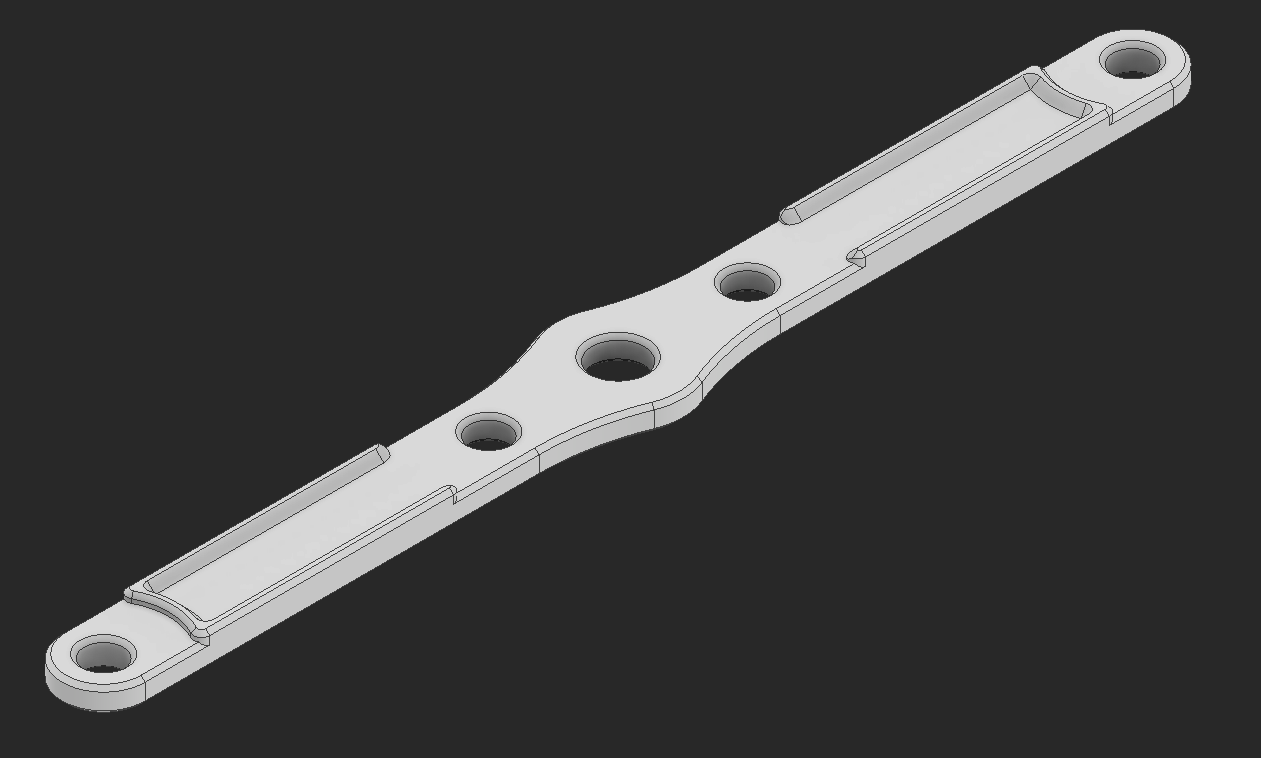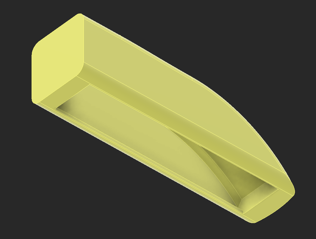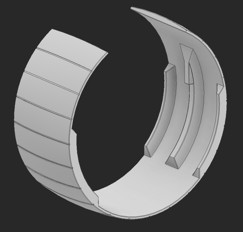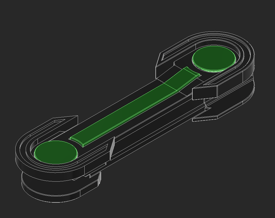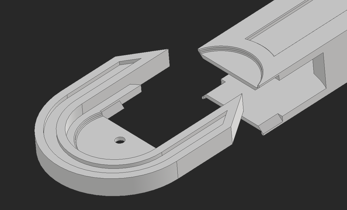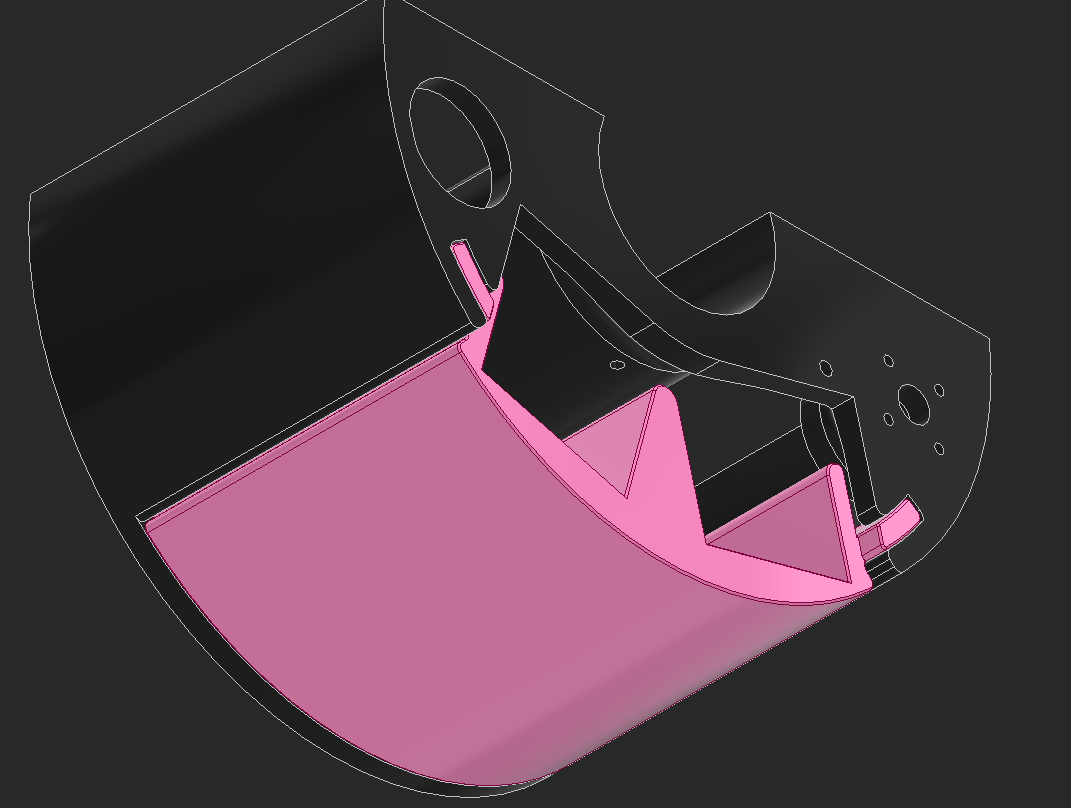 The electronics need covering. I had the idea to make a piece that flexes around the body and clicks into place over the main printed chassis. This part is printed and ideally will flex around the chassis.