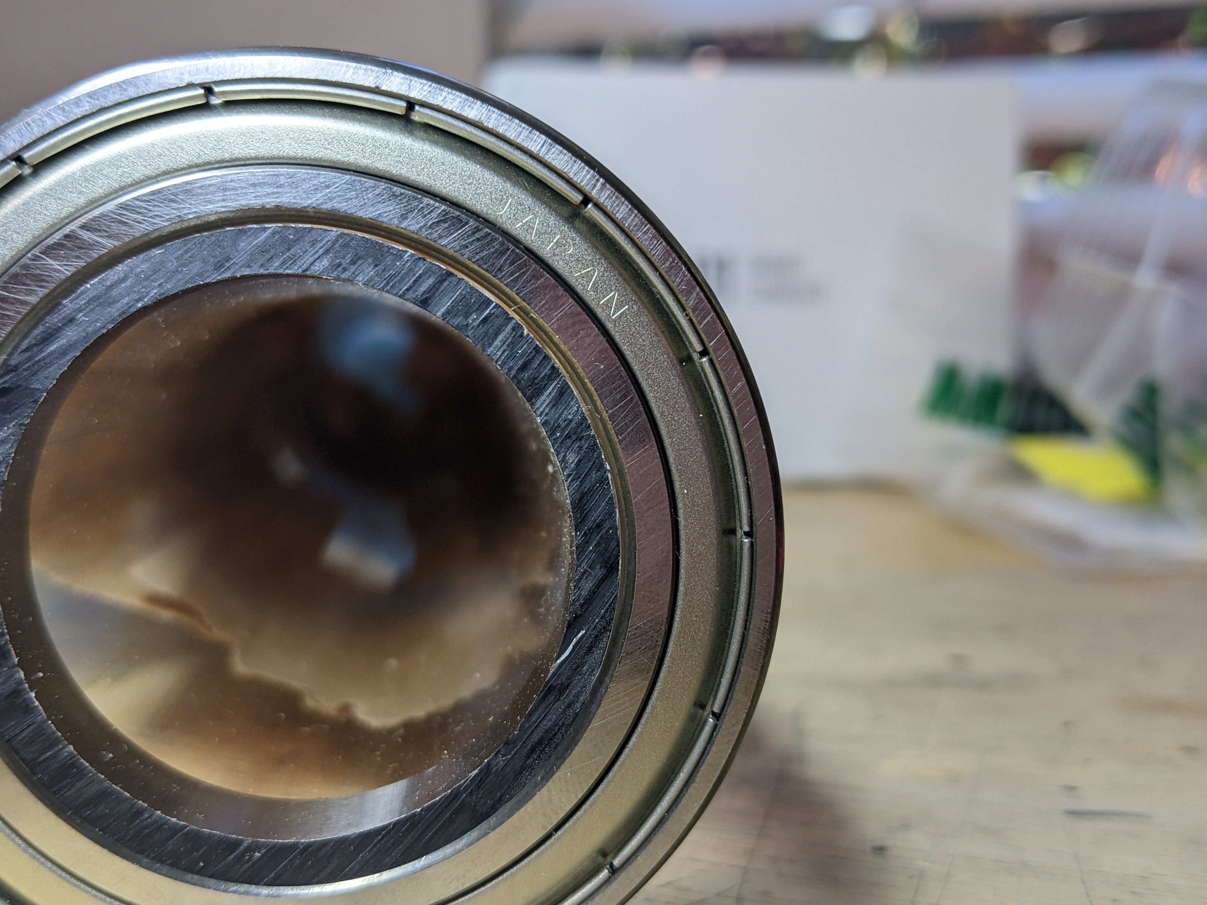 I thought there was a chance the 45mm ID bearing would fit nicely over the 1.75" OD polycarbonate tube I'm using, but they had a very noticeable amount of slop. I'll have to put aluminum tape over the shaft to fix this.