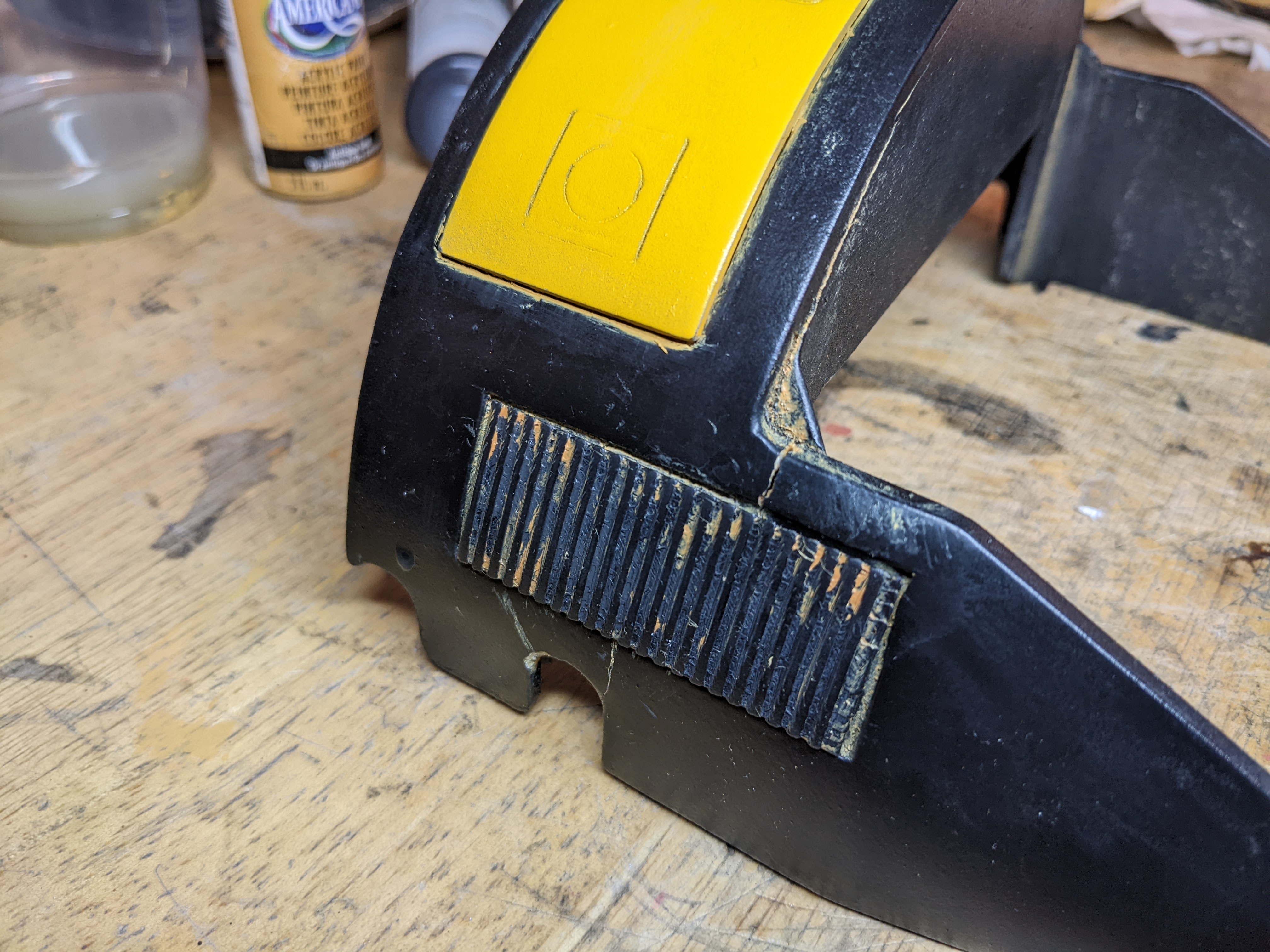 I decided to have separate parts that are painted a different color that attaches to the leg.