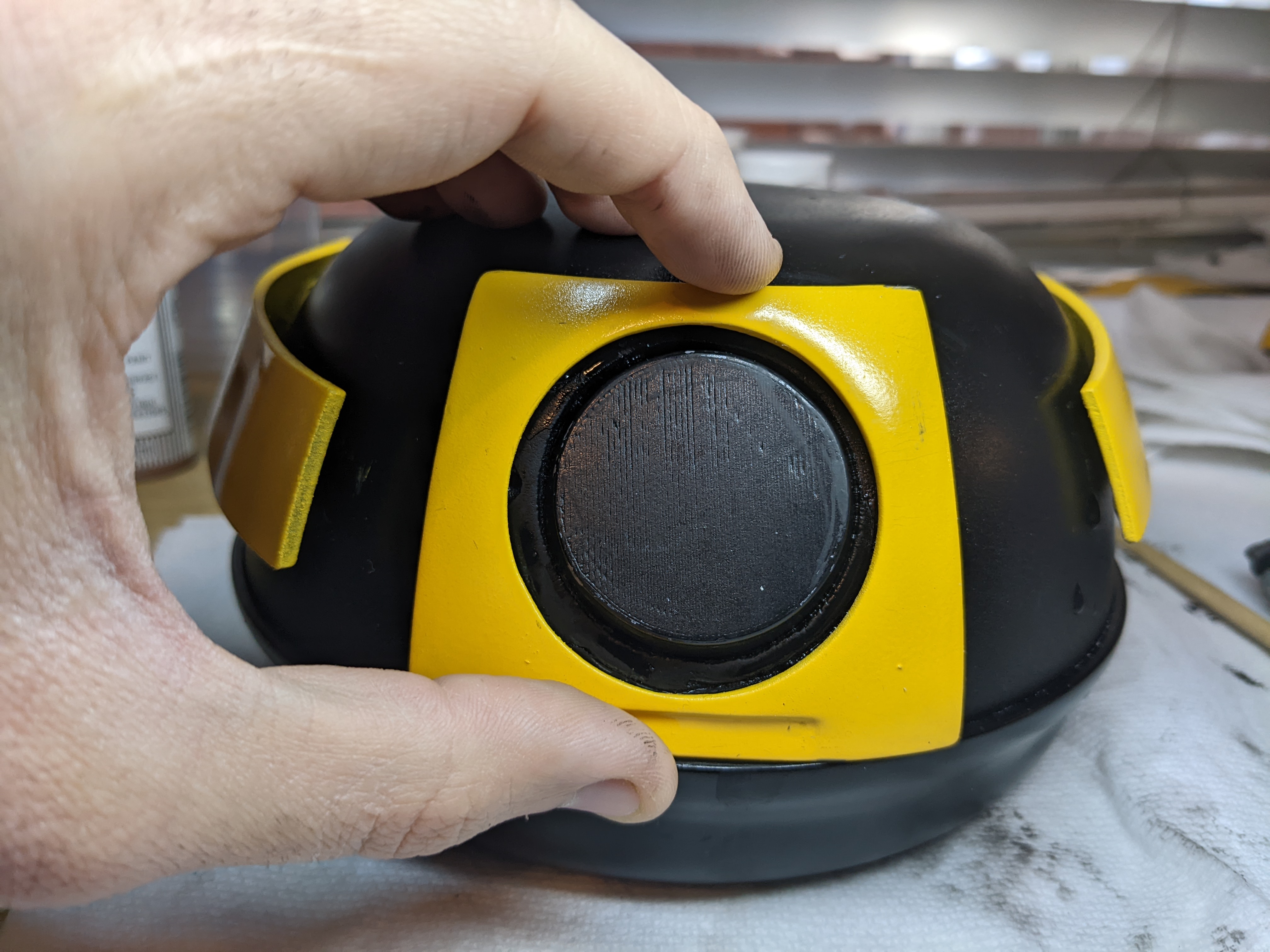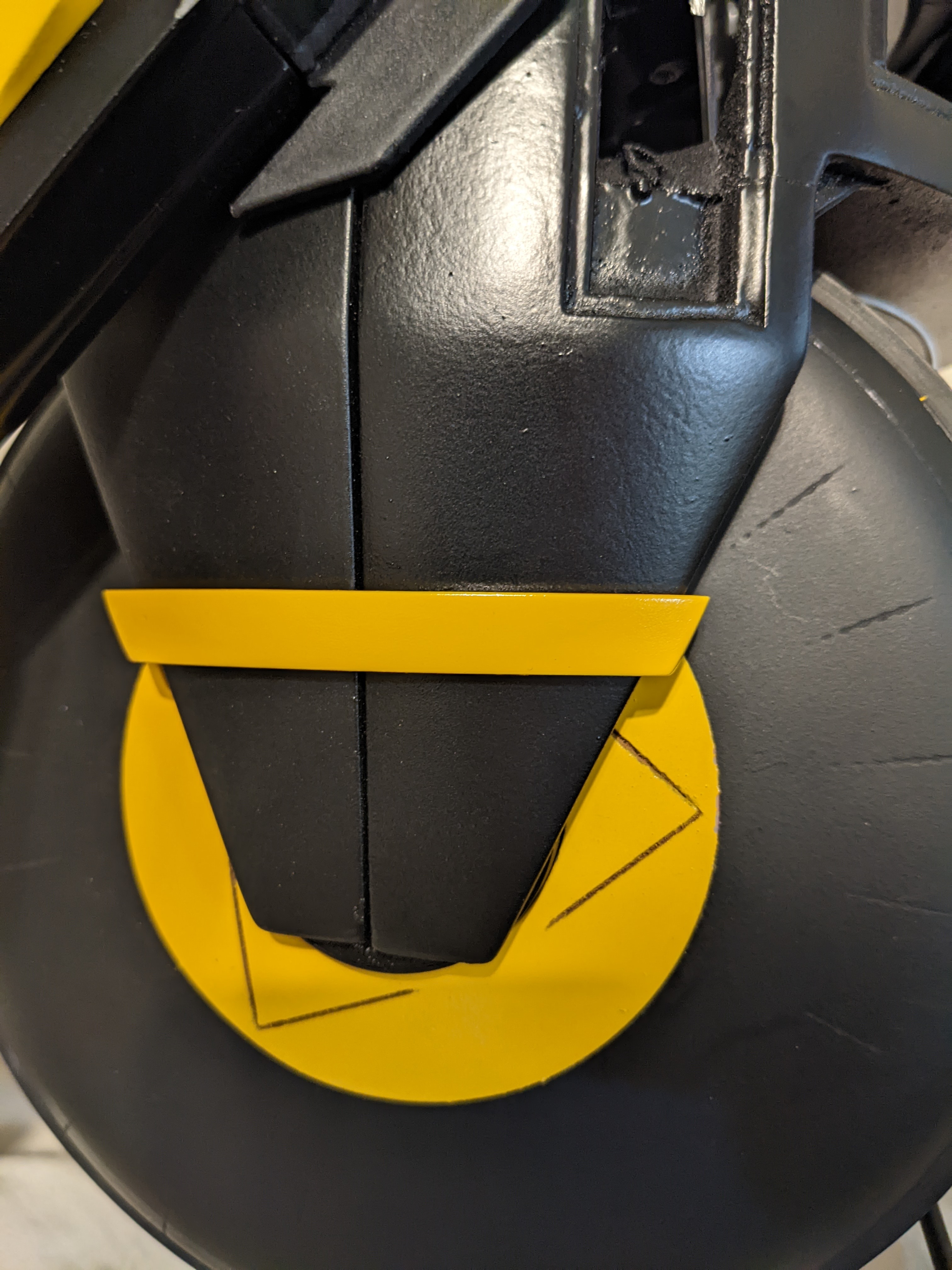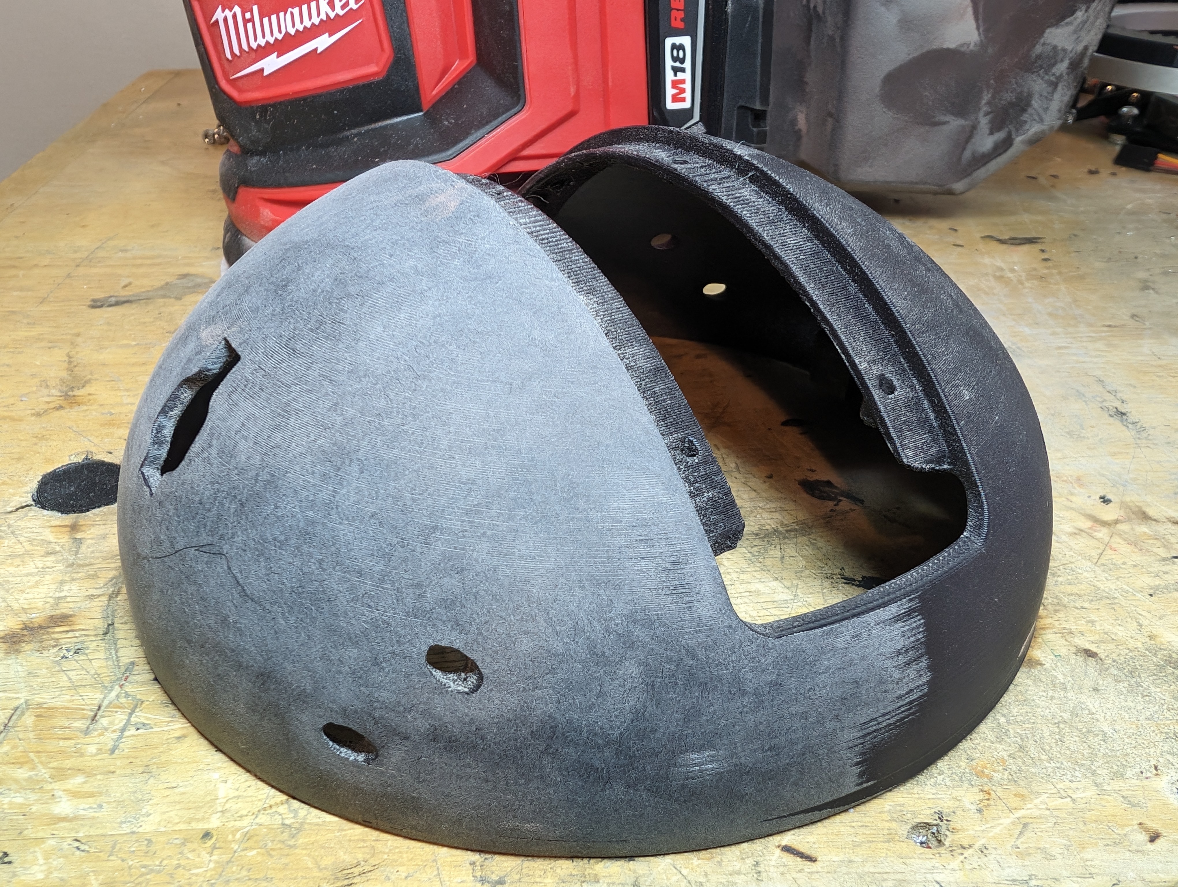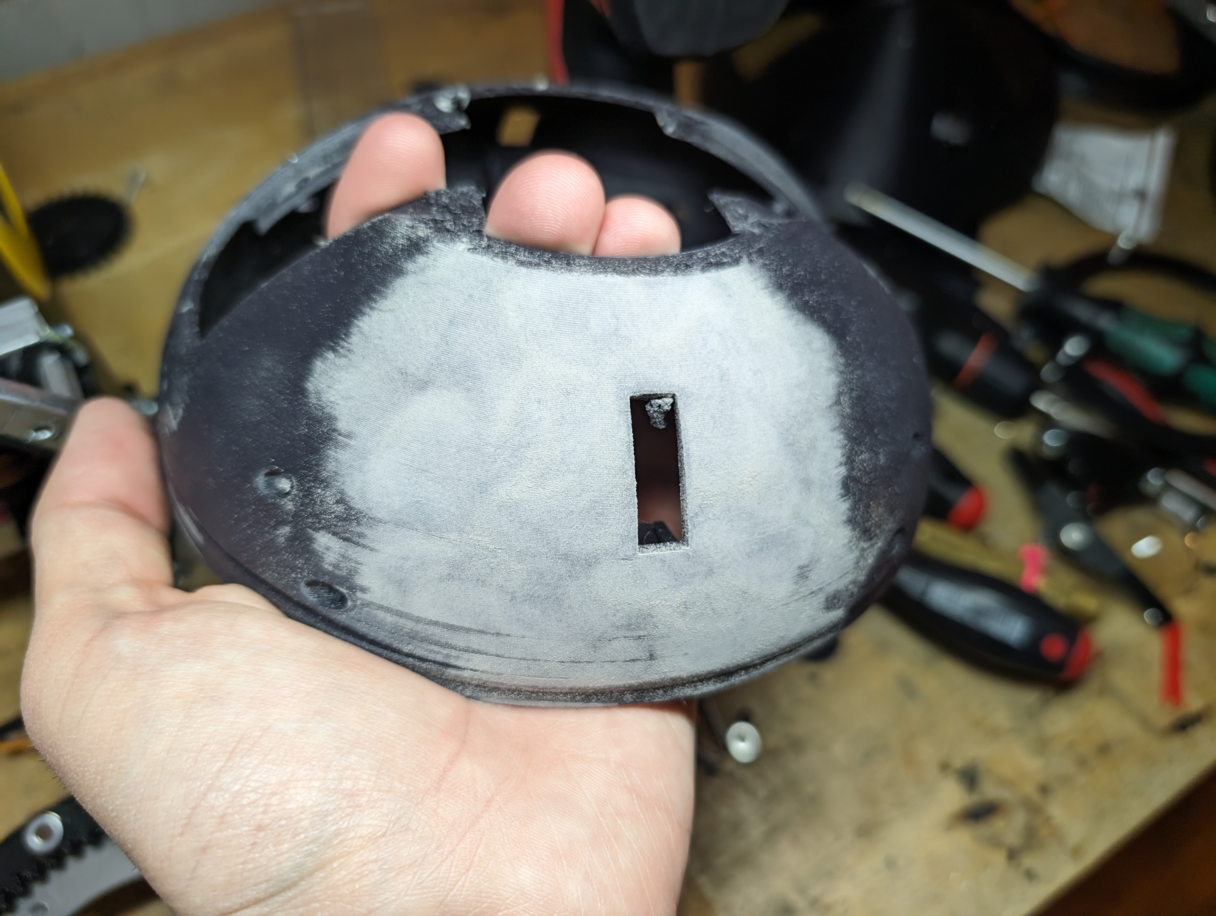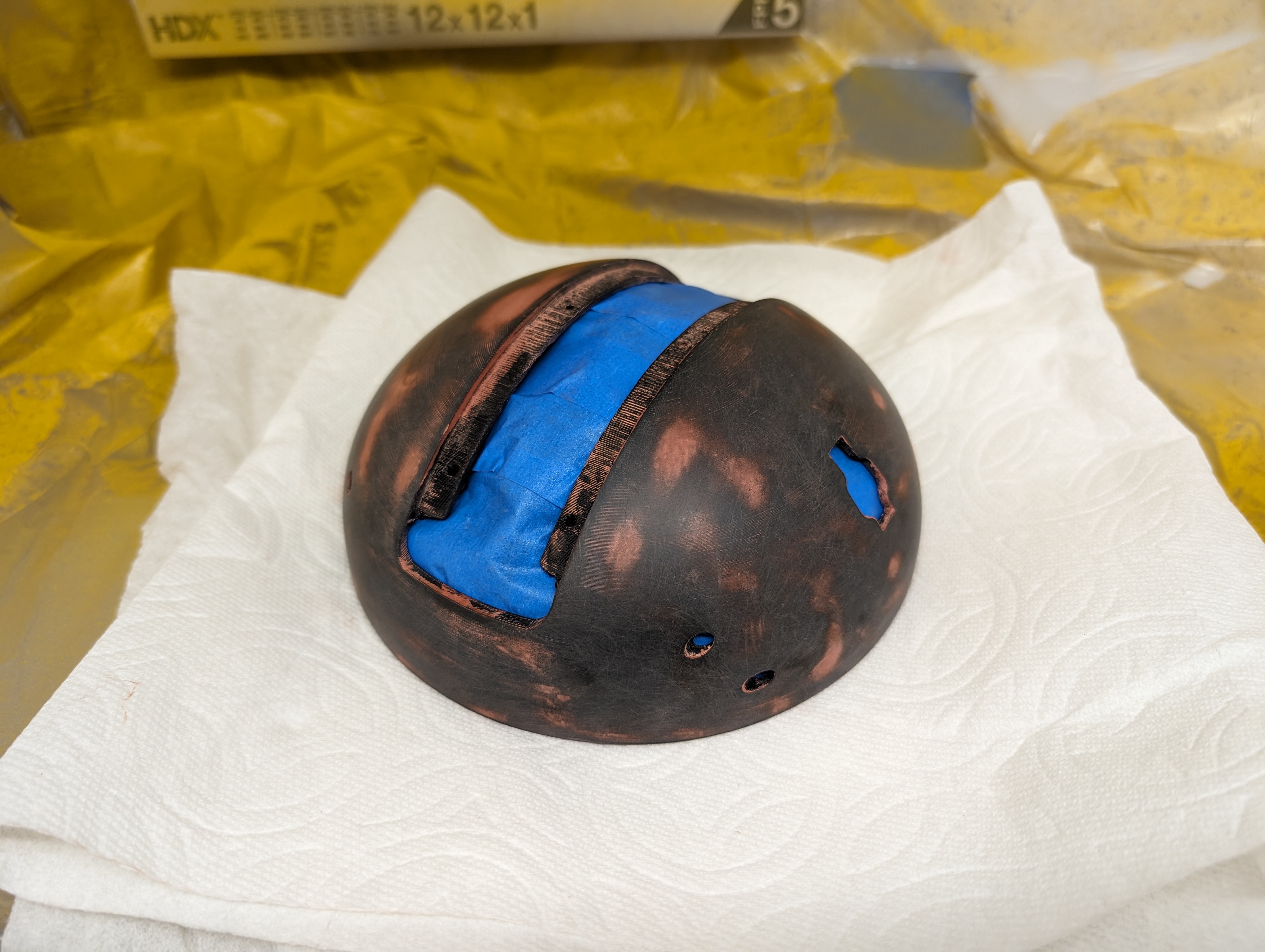 After sanding I wiped the particles off and put a very thin layer of Bondo spot putty over the entire head. This filled in all the gaps sanding missed and makes everything smooth.