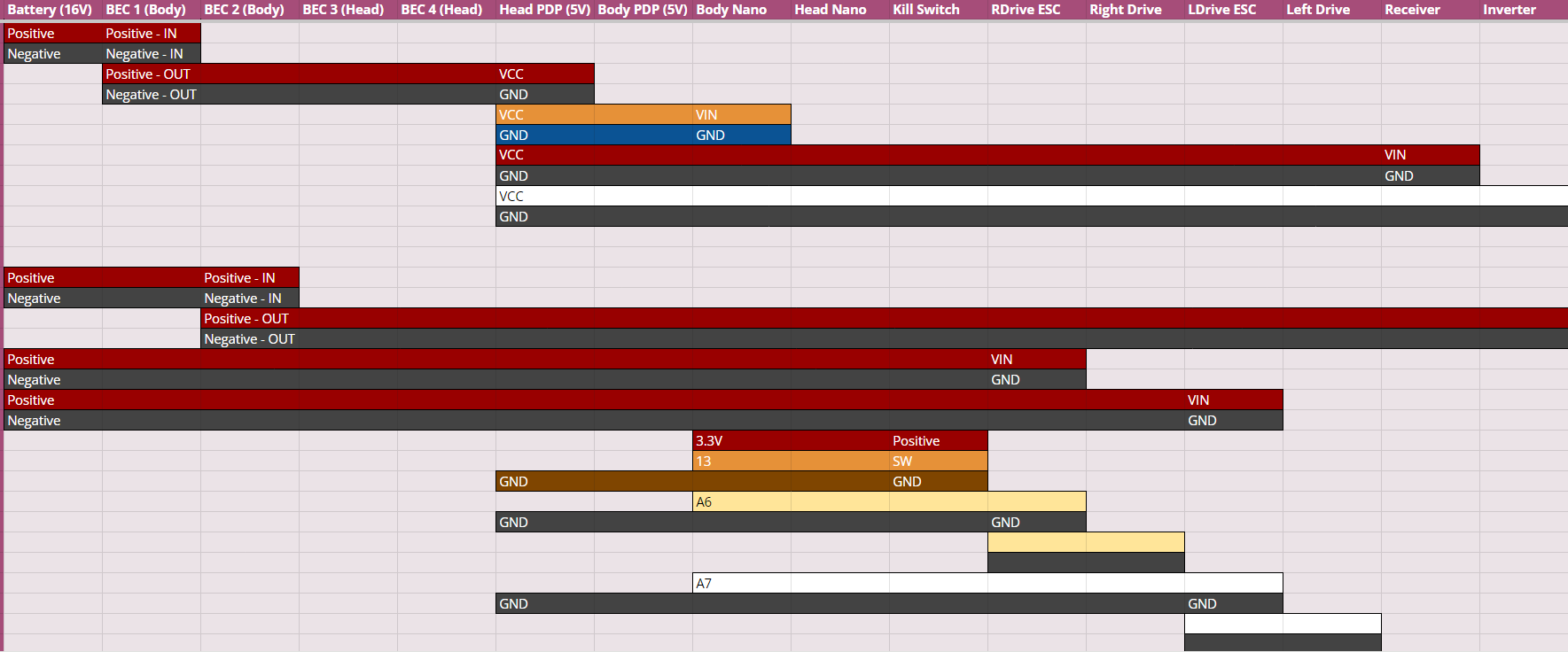 Eventually after testing some more, the robot stopped responding to anything. I figured out that I fried the Teensy in the head and the body. After asking Kiana Dumdumaya why this would happen, we looked through the specs of the Teensy and saw that it only supports 3.3v IO when I'm using 5v IO and downstepping a 4s lipo to 5v for the electronics. We decided to switch over to an Arduino Nano Every. I tried to get that working before the event but for some reason, I ended up frying the Arduino in the body too when I was testing. I didn't want to rush this and waste a bunch of money, so I decided to wait until I could work with Kiana to get all of the electronics working and redo everything with her. I'd go to the convention with a completed visual robot and incomplete electronics.