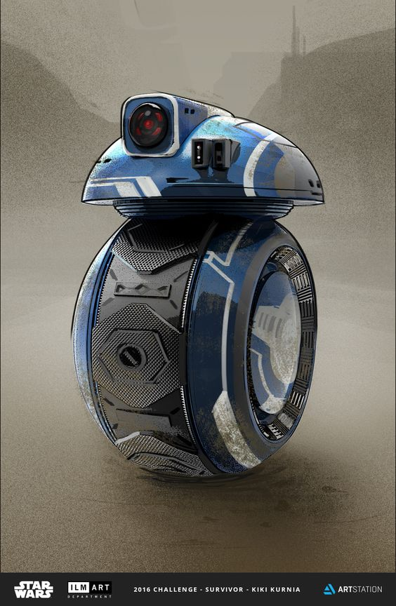 I started looking into drawings of droids and stumbled across this which feels so perfect. It has the D-O tire but adds arms, and the body looks like an R2 but the head is a BB-8. It seems perfect, and this became my reference photo for simplifying the project.