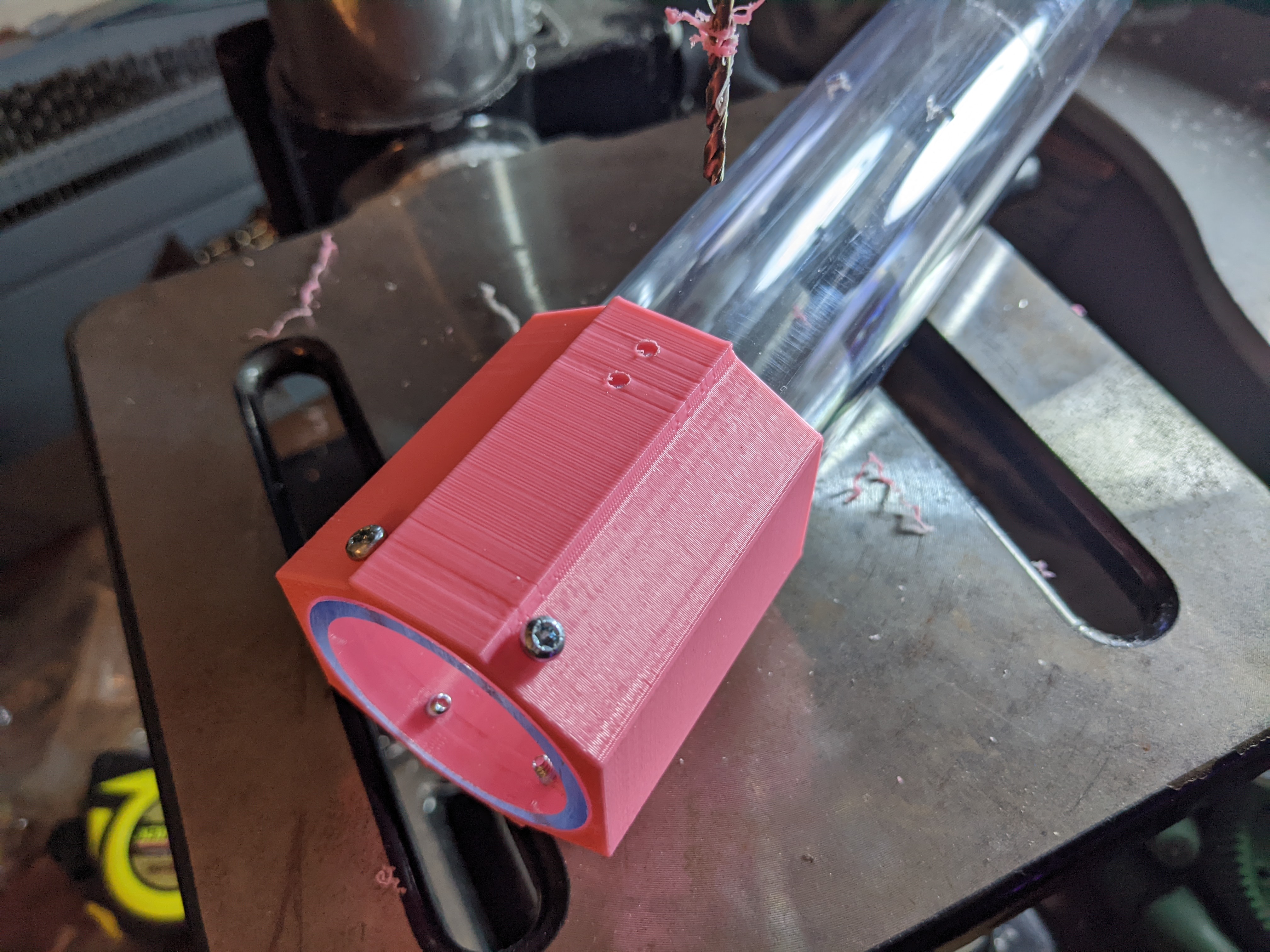 The shaft isn't attached properly in those tests, so I need to drill holes in the tube to get everything mounted.