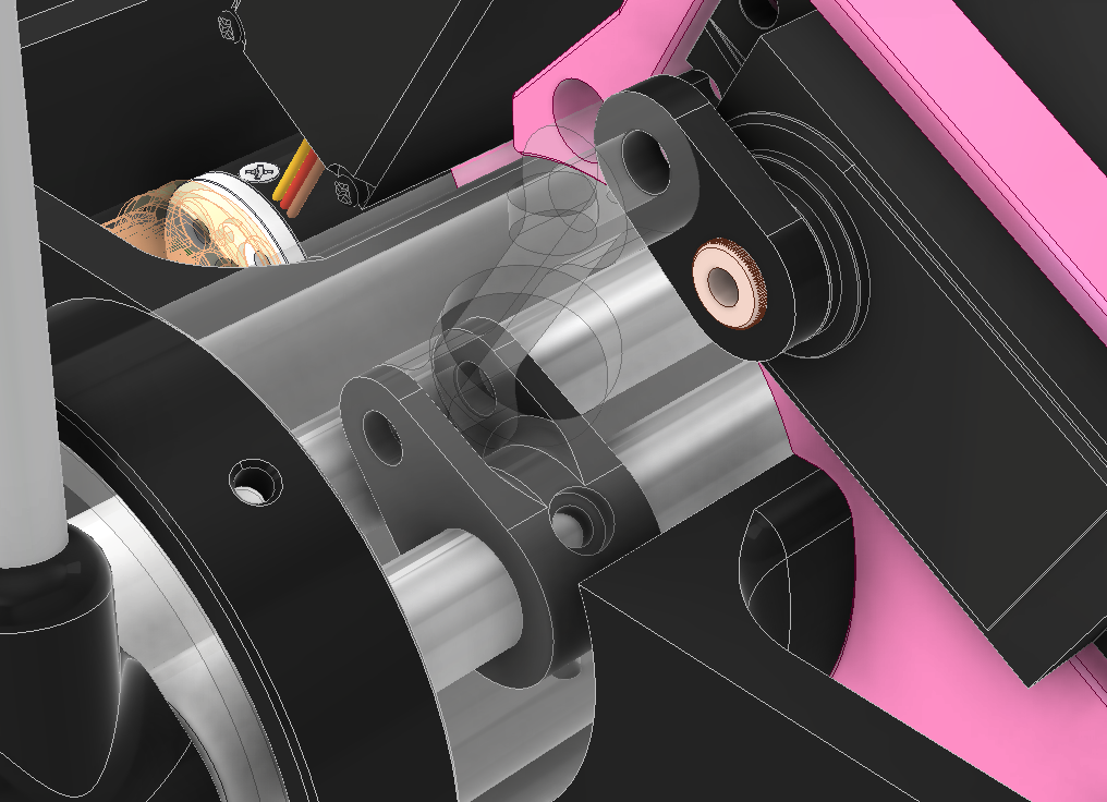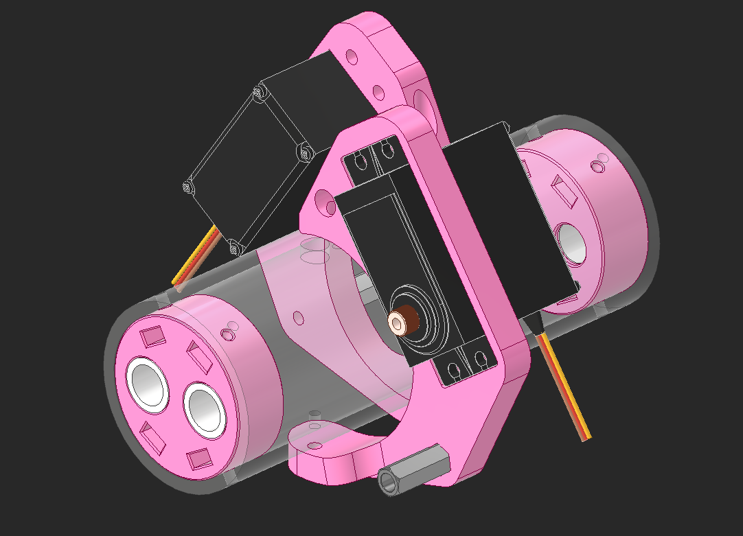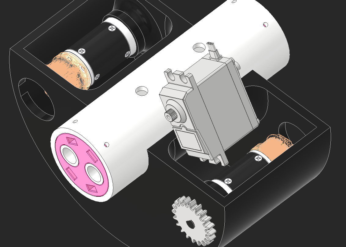 The linkages need a way to be powered and that would have to happen between the wheels. I placed a servo in the CAD here and it looks like it'll fit nicely.