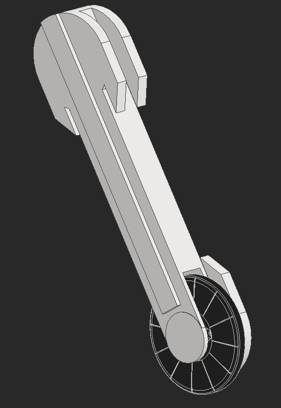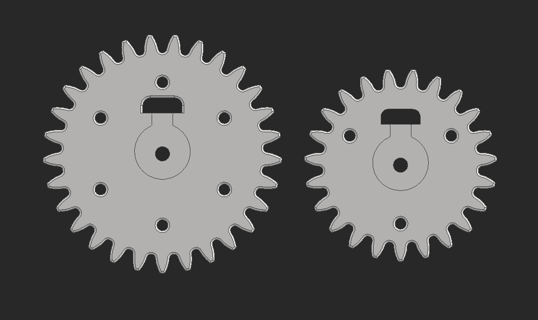 To get the aluminum rods to spin, my first idea was to use a portion of a gear. I very quickly stopped liking this idea because of how much material needs to get cut out of the main drive shaft.