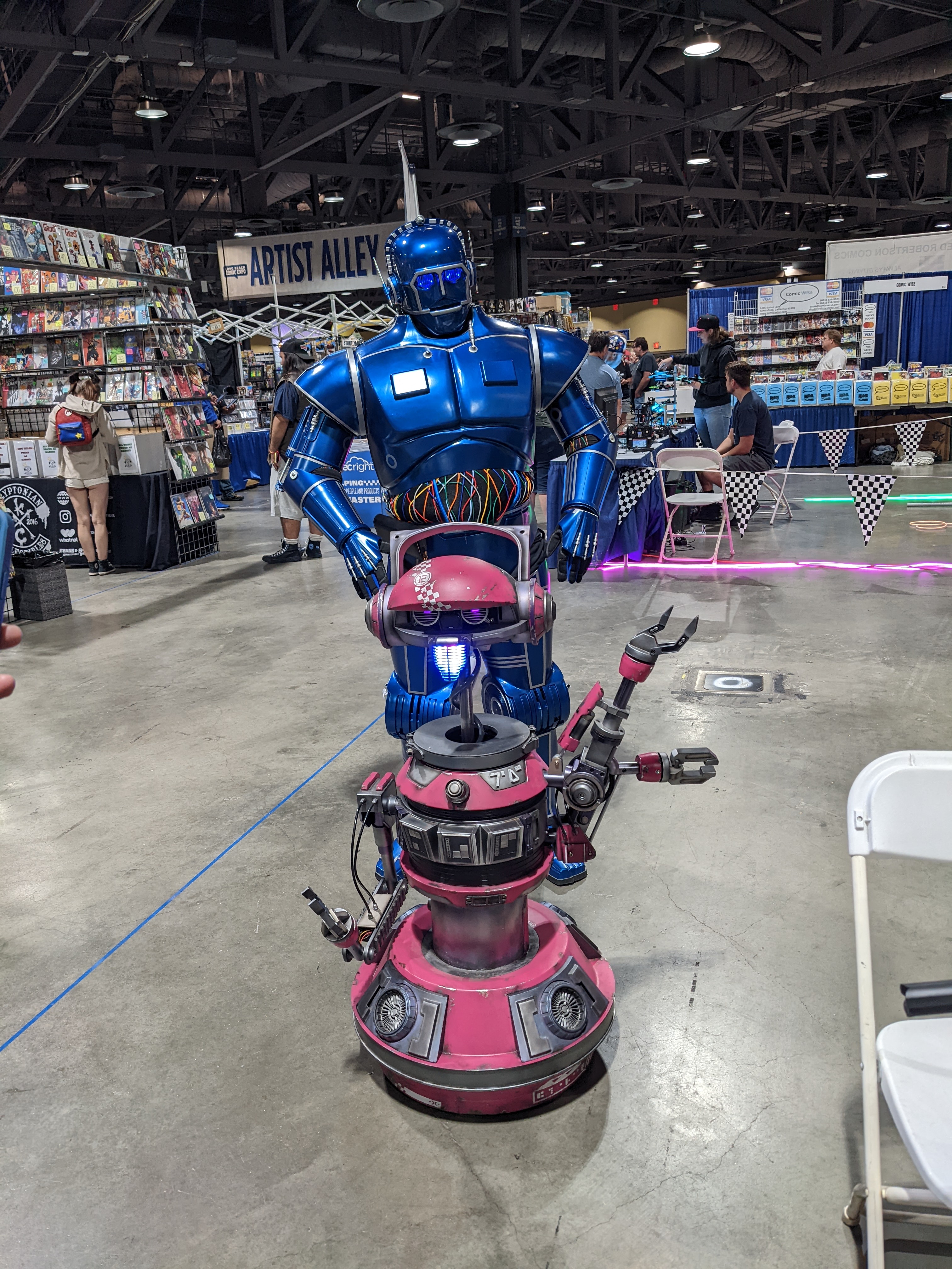 I also ran into the R2 Builders booth and discussed it with CuriousMarc. I remember watching his YouTube videos back in ~2016, it was very cool to meet him. He let me look inside the droid and we spoke for a bit. He told me to start simple before jumping into a larger project like an R2. I realized then I had to simplify this project to get it done and making the entire project rely on something I wasn't 100% sure would work as well as I hoped was concerning.