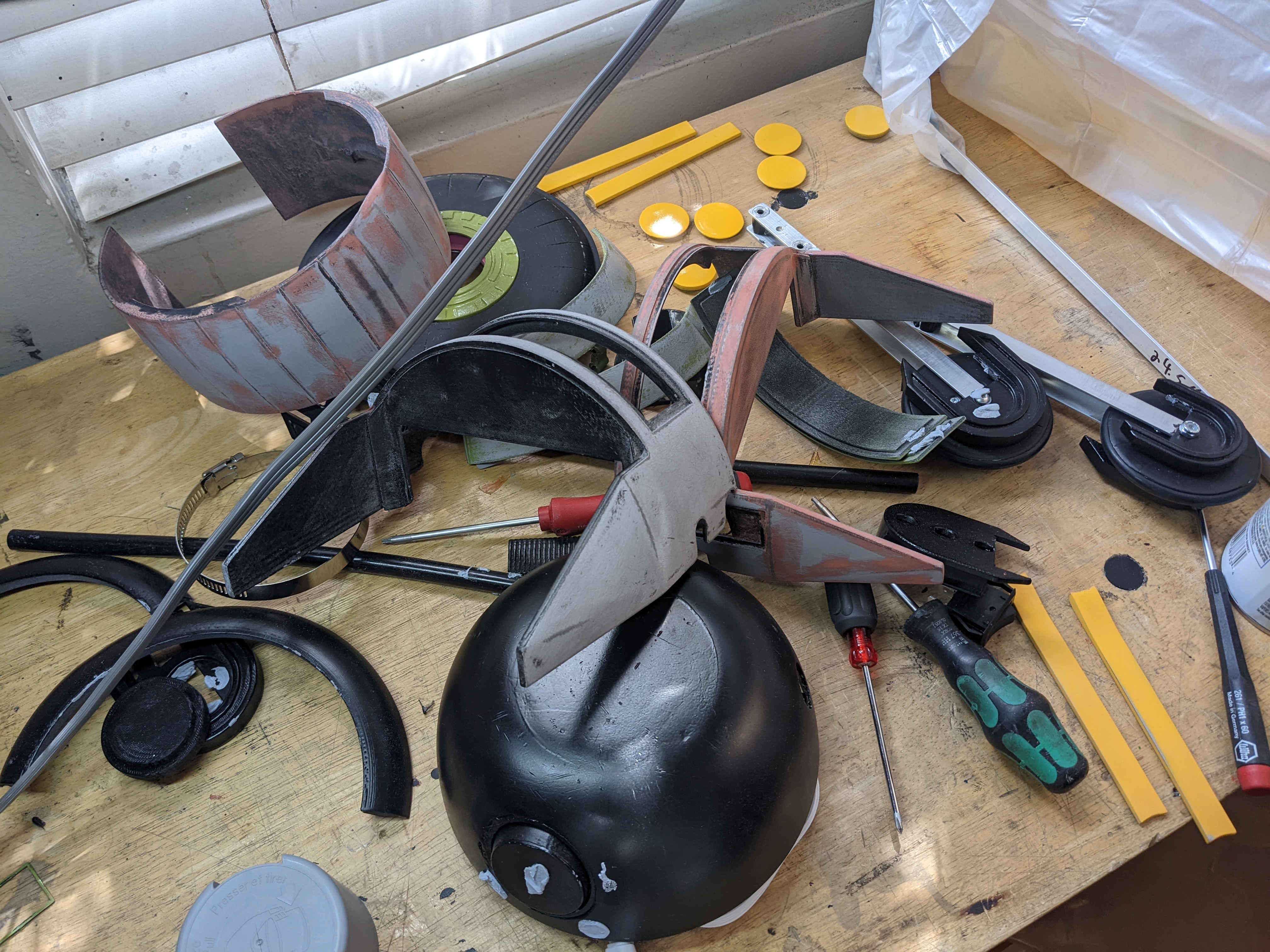 With everything I learned talking to the other droid builders at Long Beach Comic Con, I decided to sand back paint on every part and redo them. The highest priority for me was to go to the next con with the robot working. Here's my priority list: