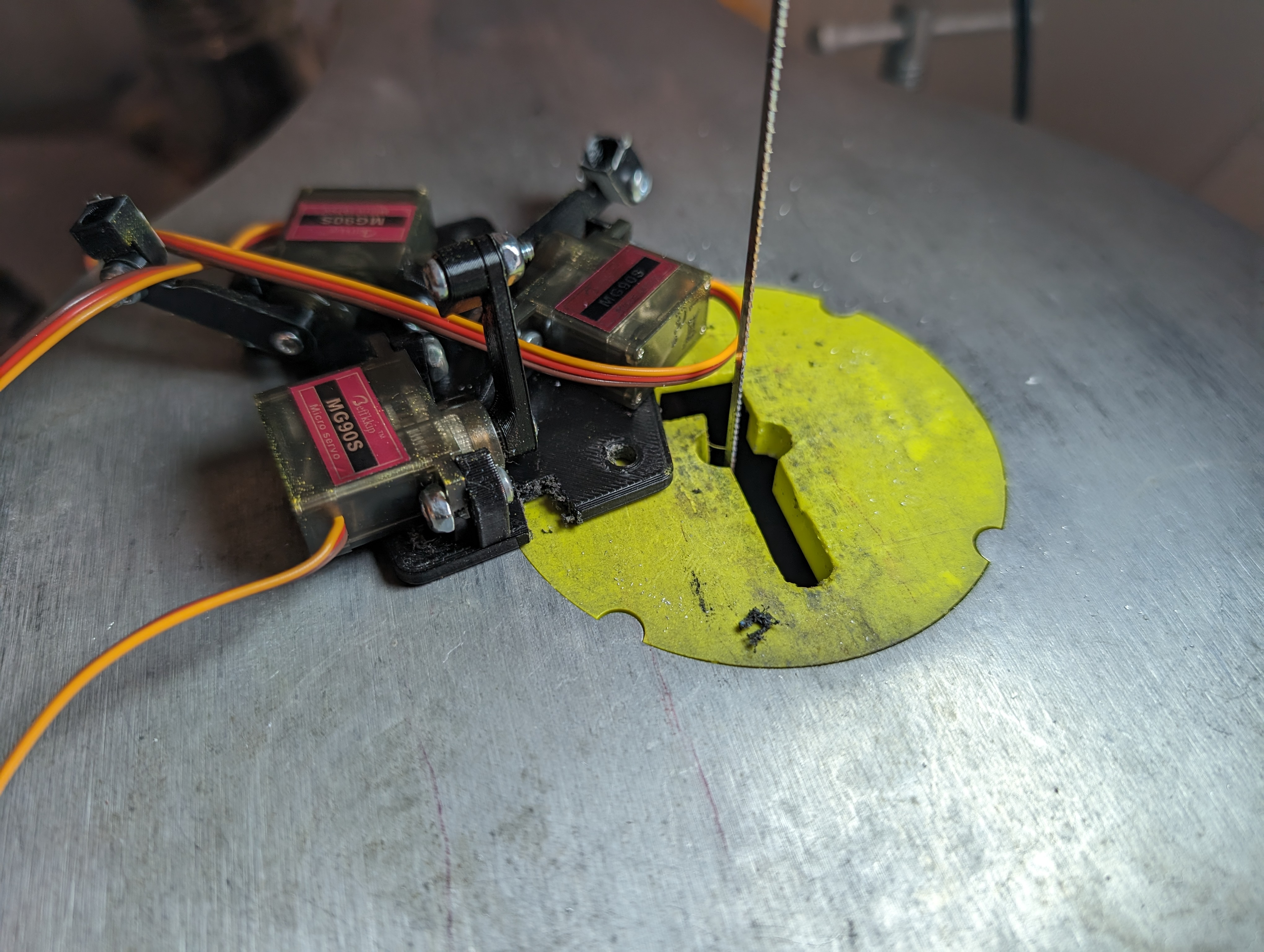 I made a mount for the servo and cut out a linkage from 1/8" polycarbonate to connect the servo horn to the lazy susan.