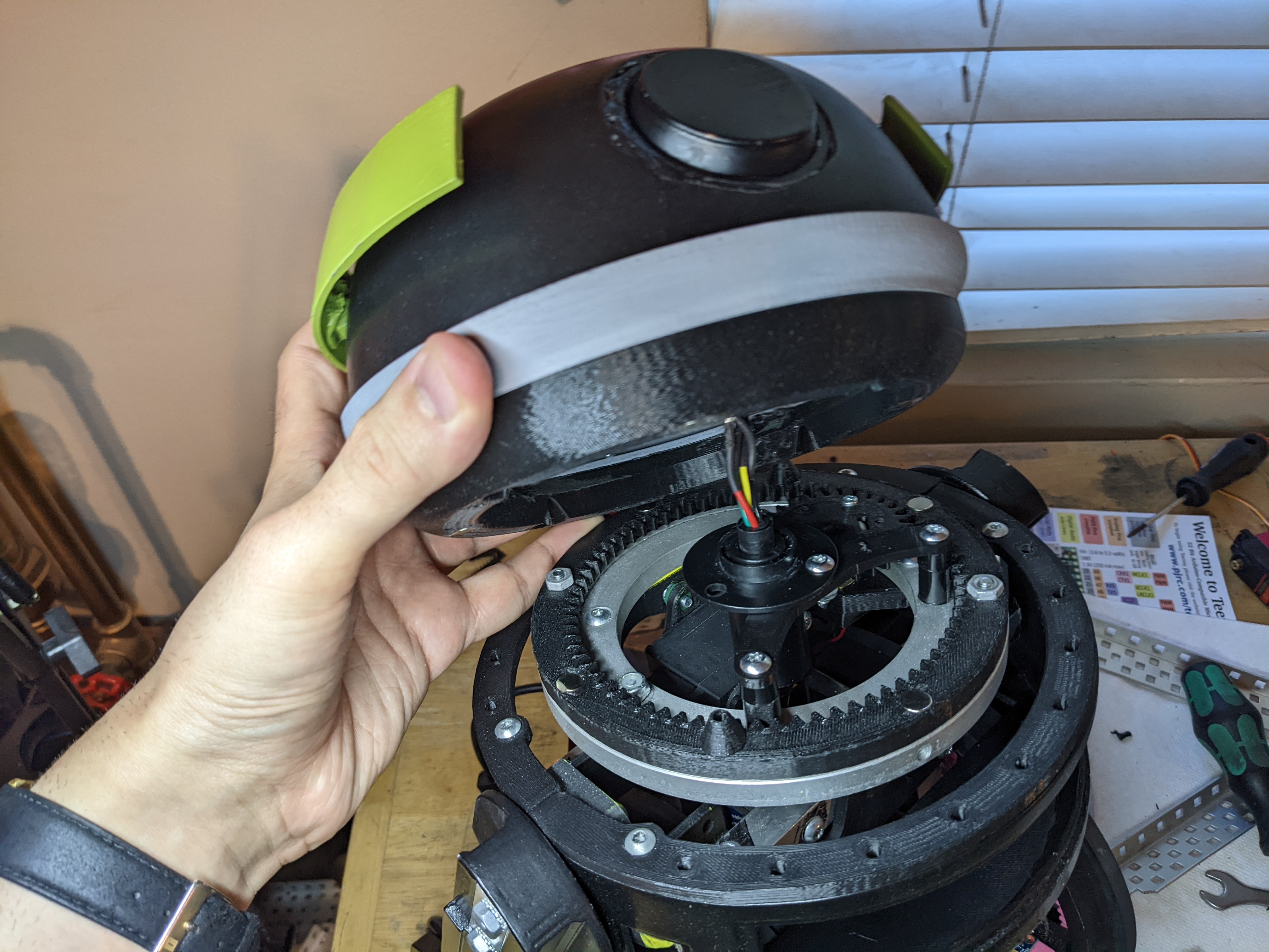 To make the head spin I designed a ring gear similar to how the wheels work. I'll use an N20 motor to make the head spin.