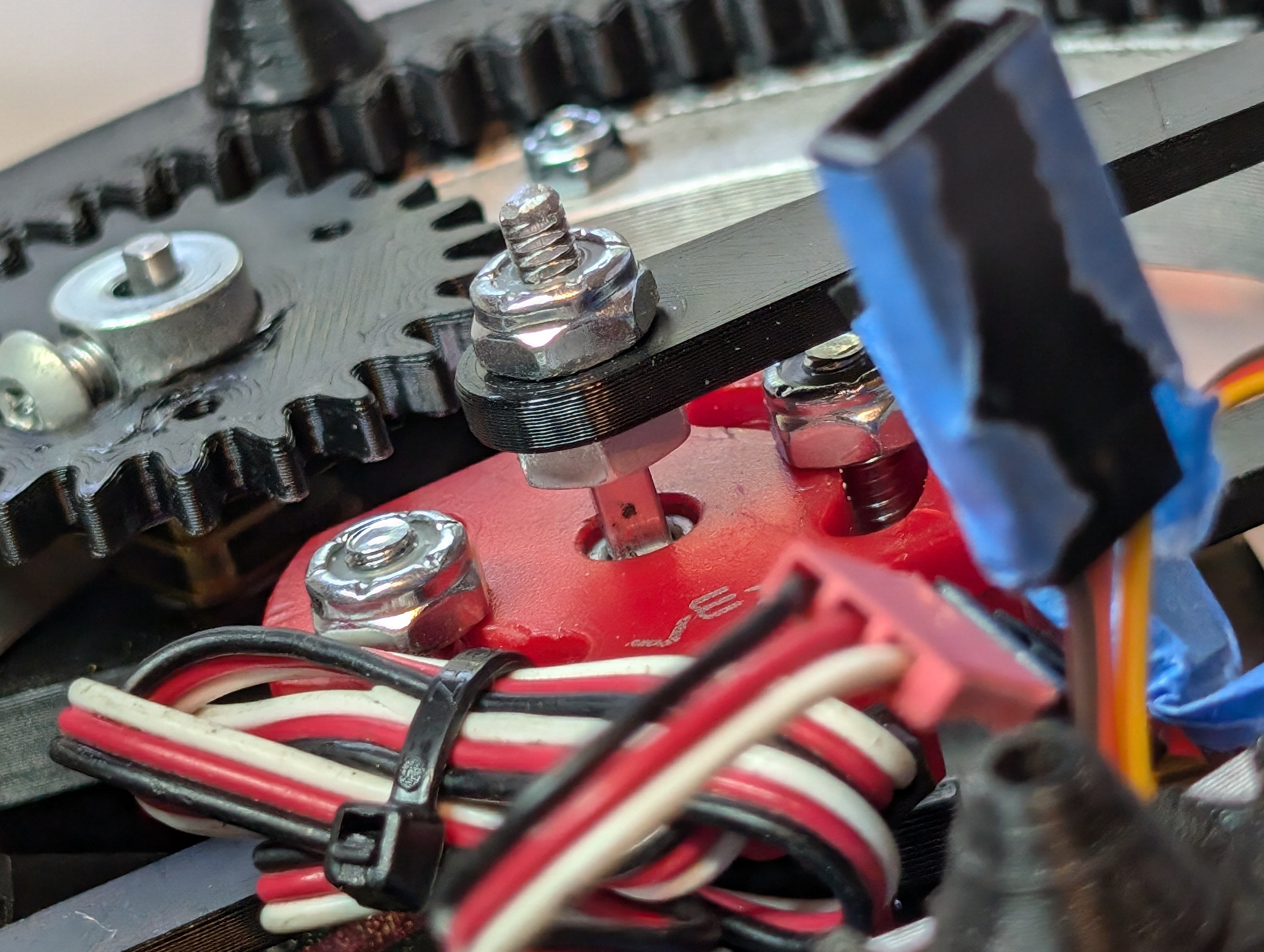 Mounting the shaft to the body was simple, and the servos could now be screwed in too.