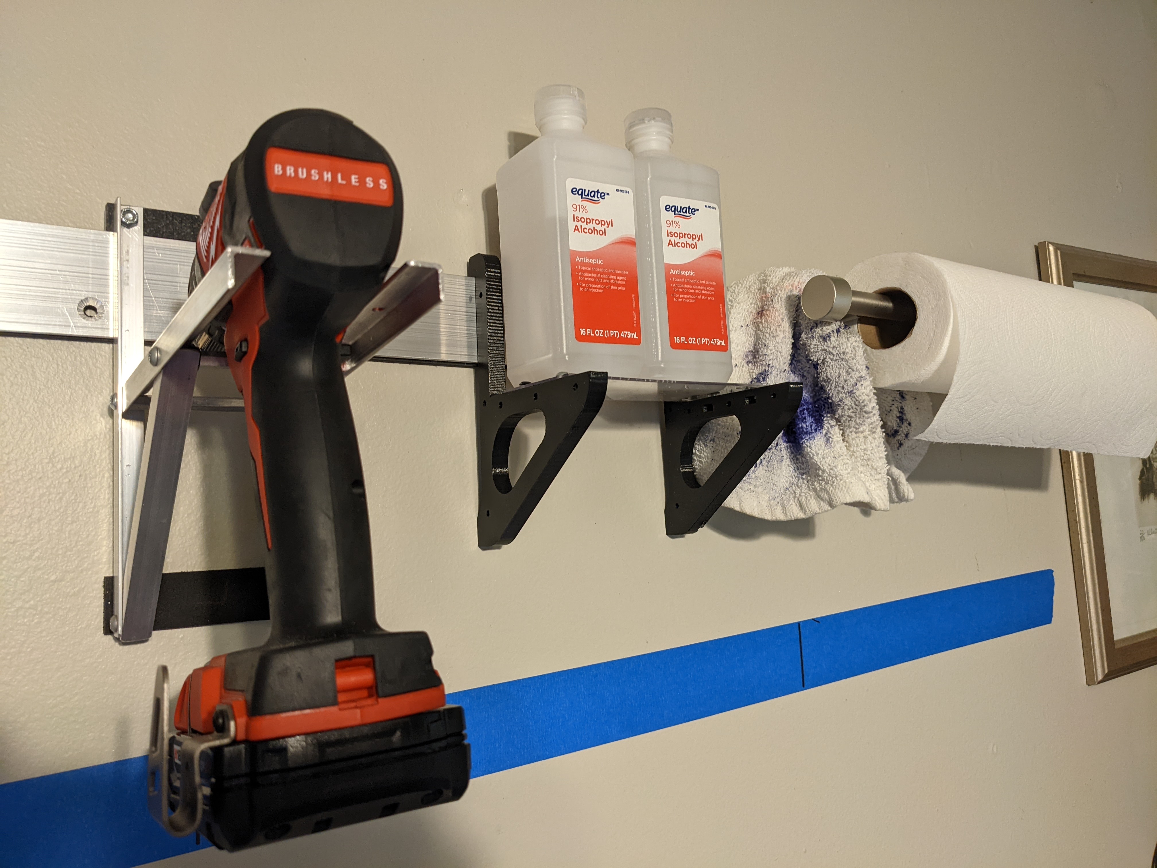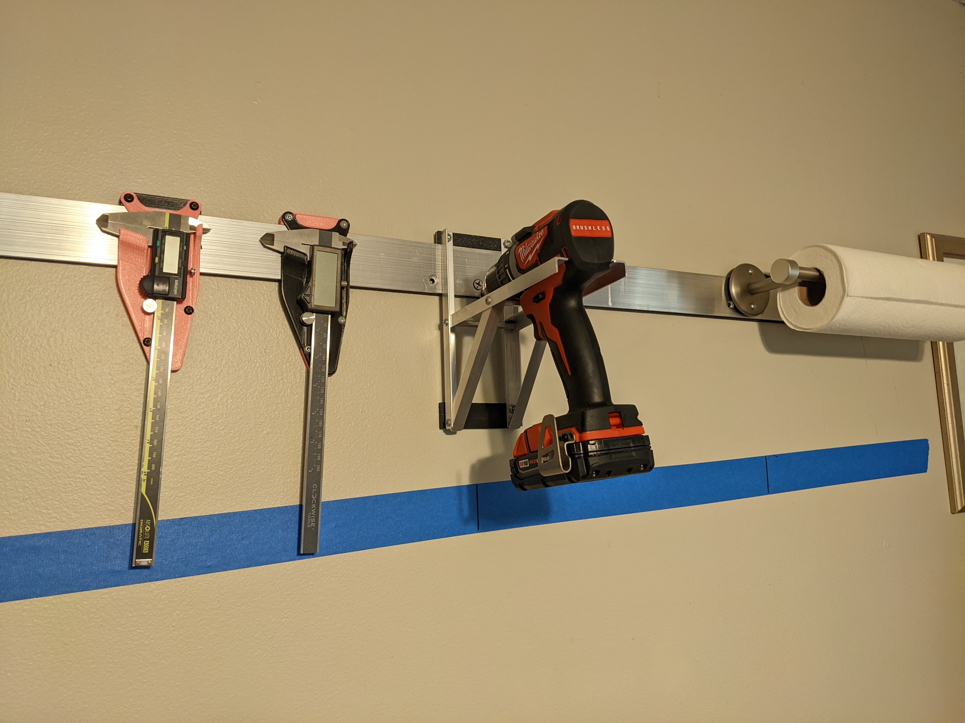 I designed caliper holders and a mount for a paper towel holder. (yes the tape isn't level, my marker lines are level though)
