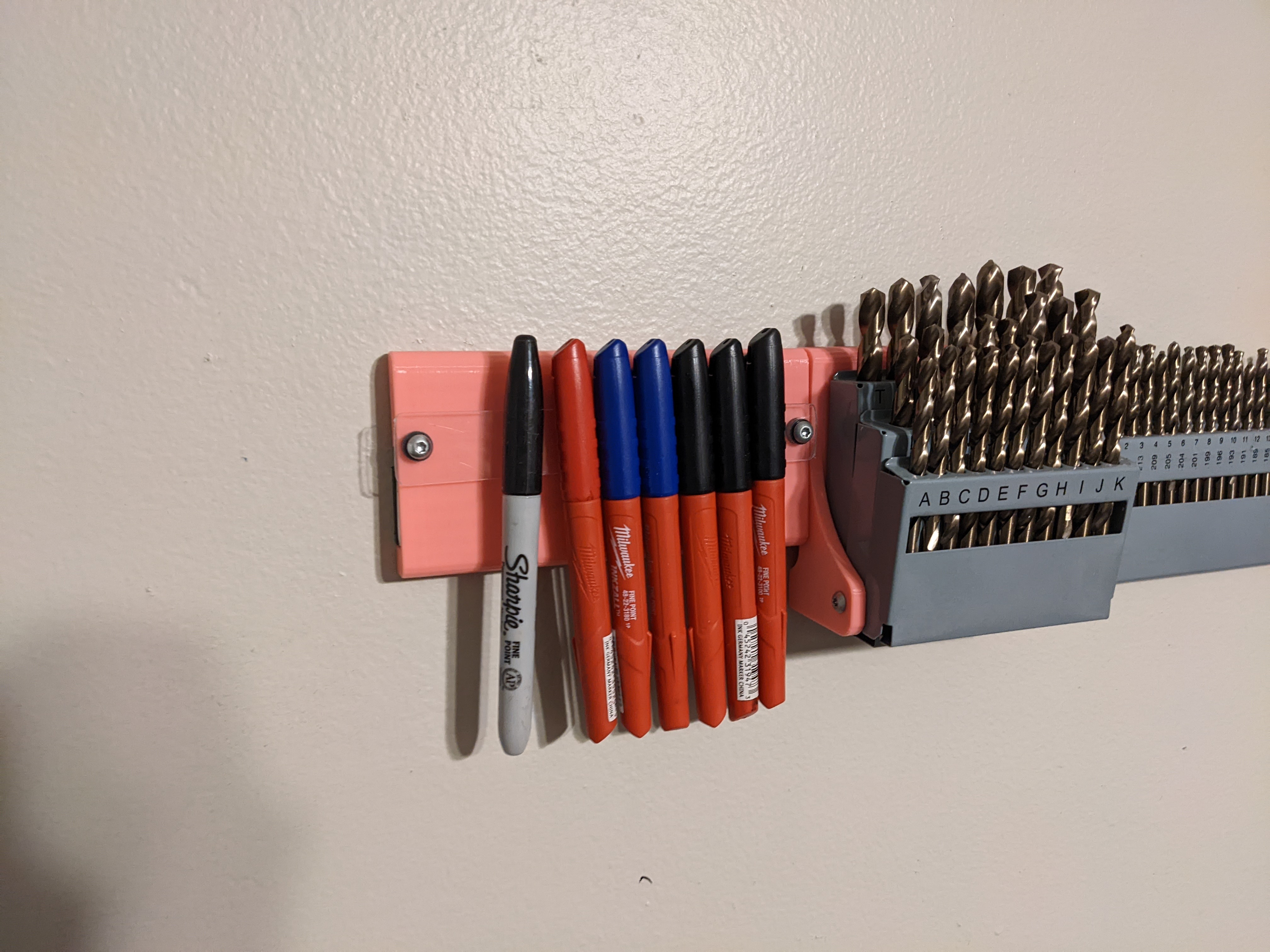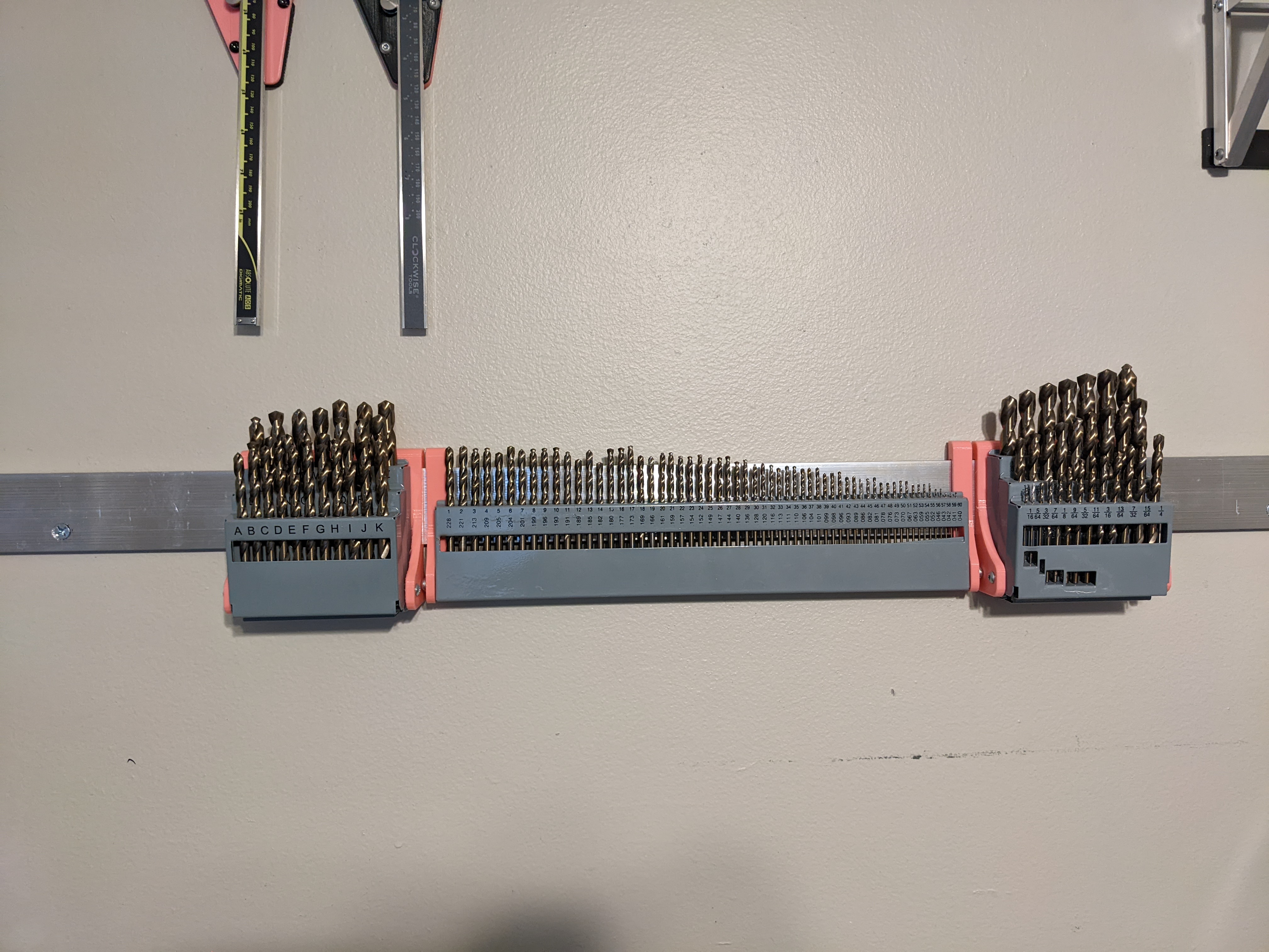I took my drill bit case took out each section, and made simple brackets for them to go on the wall with.