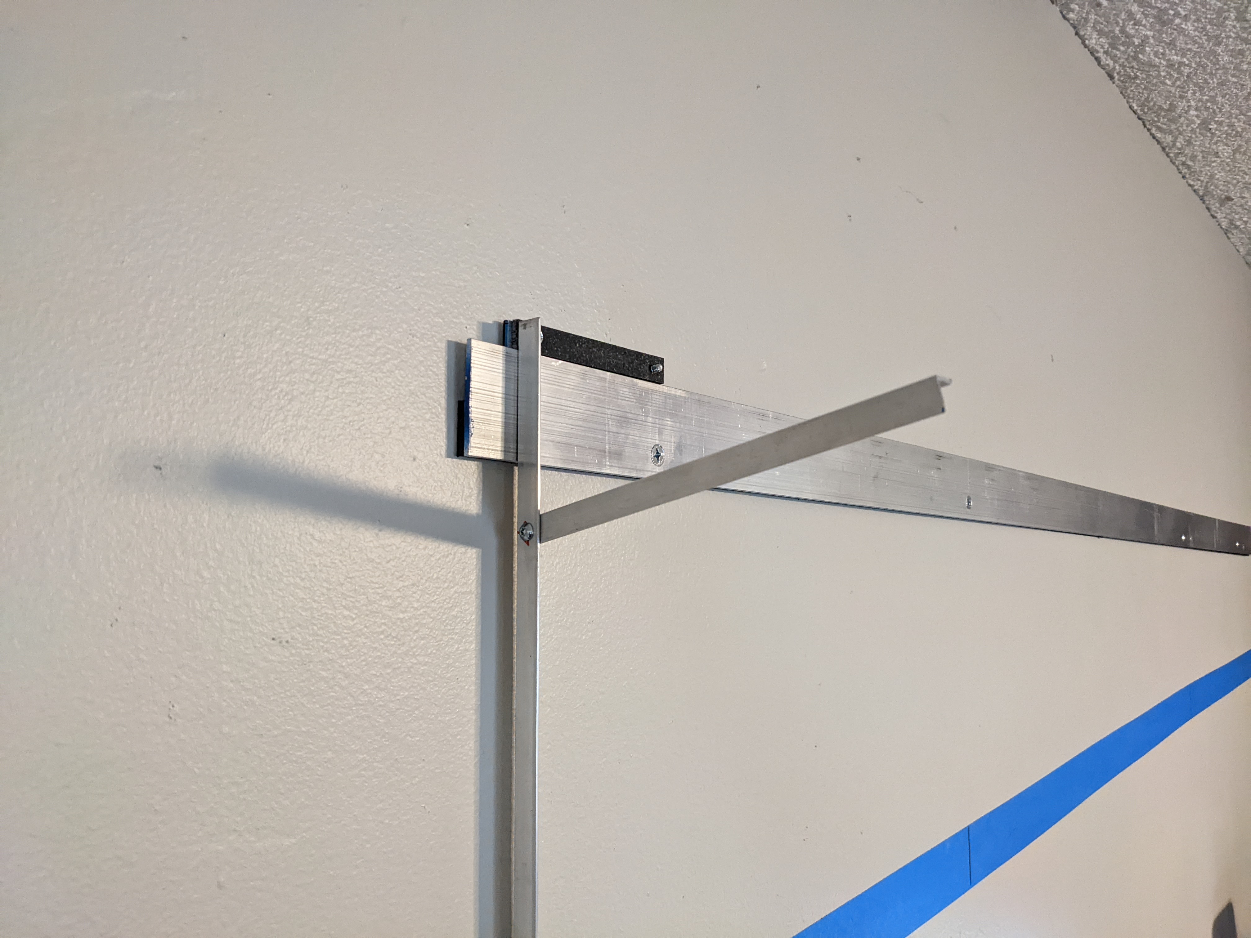 Instead of machining a 45-degree angle into metal which I don't have the tools for, I decided on leaving a gap between the wall and a piece of metal. There will be a piece of plastic between them. This lets me have a matching shape on something I mount to the wall.