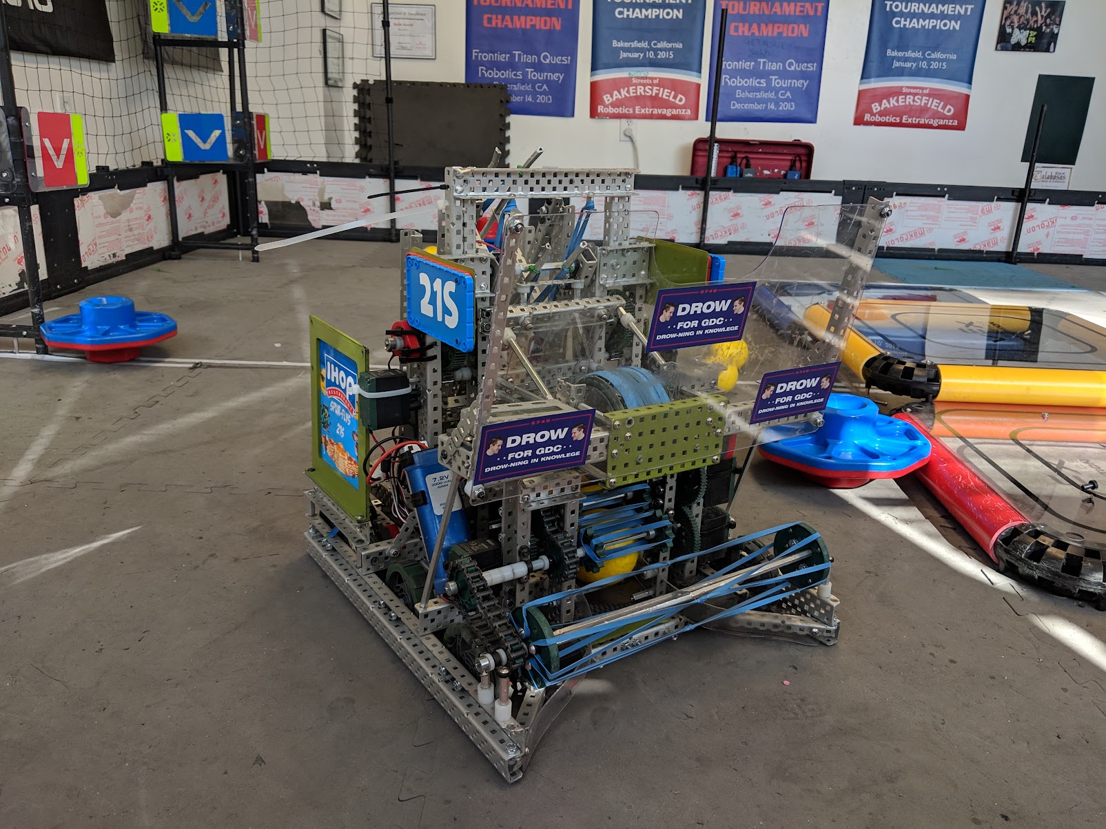 This robot was started over the summer and was decommissioned in December. This robot lasted for 164 days. After all of our mistakes during the previous season, we decided to keep a robot together as long as possible, practice as much as we could, and tune as much as possible.