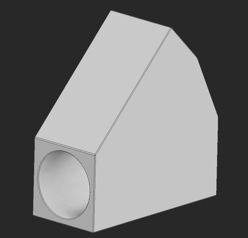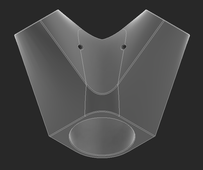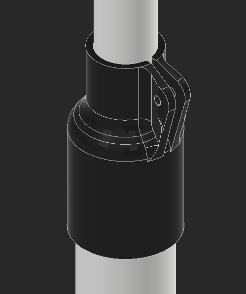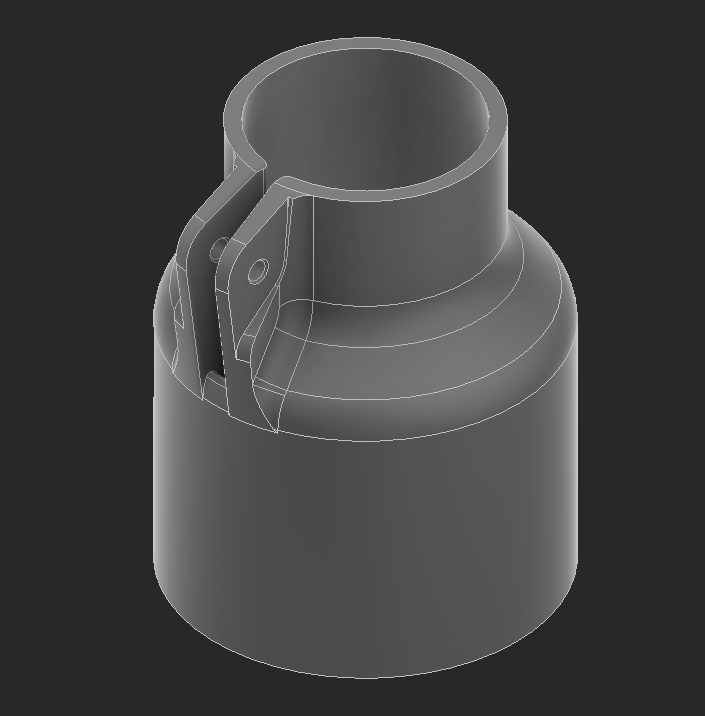 The first version of this is a coupler between two PVC sizes. There's a hole between a slit so when a screw gets tightened, the entire thing will squeeze around the PVC. I'm concerned this might not have enough grip to hold the pipe in place, this could be fixed with some modified geometry or with some rubber lined on the inside. The slit also might not come down far enough to allow for enough flex, but that can be fixed by increasing the length of the slit or by making the top portion taller. For the screw, I'll try to find wing screws and wing nuts so this can all be adjusted without tools.