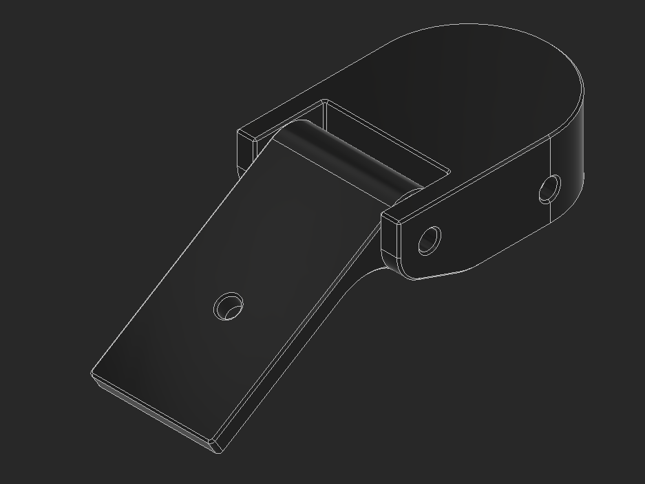 After sitting on it for a bit, I iterated on this design to use less material for the triangle brace. This was made by revolving a cylinder and then lofting the face of the rectangle to the tip of the cylinder. I added some screw holes so I have the option to mechanically link everything together.