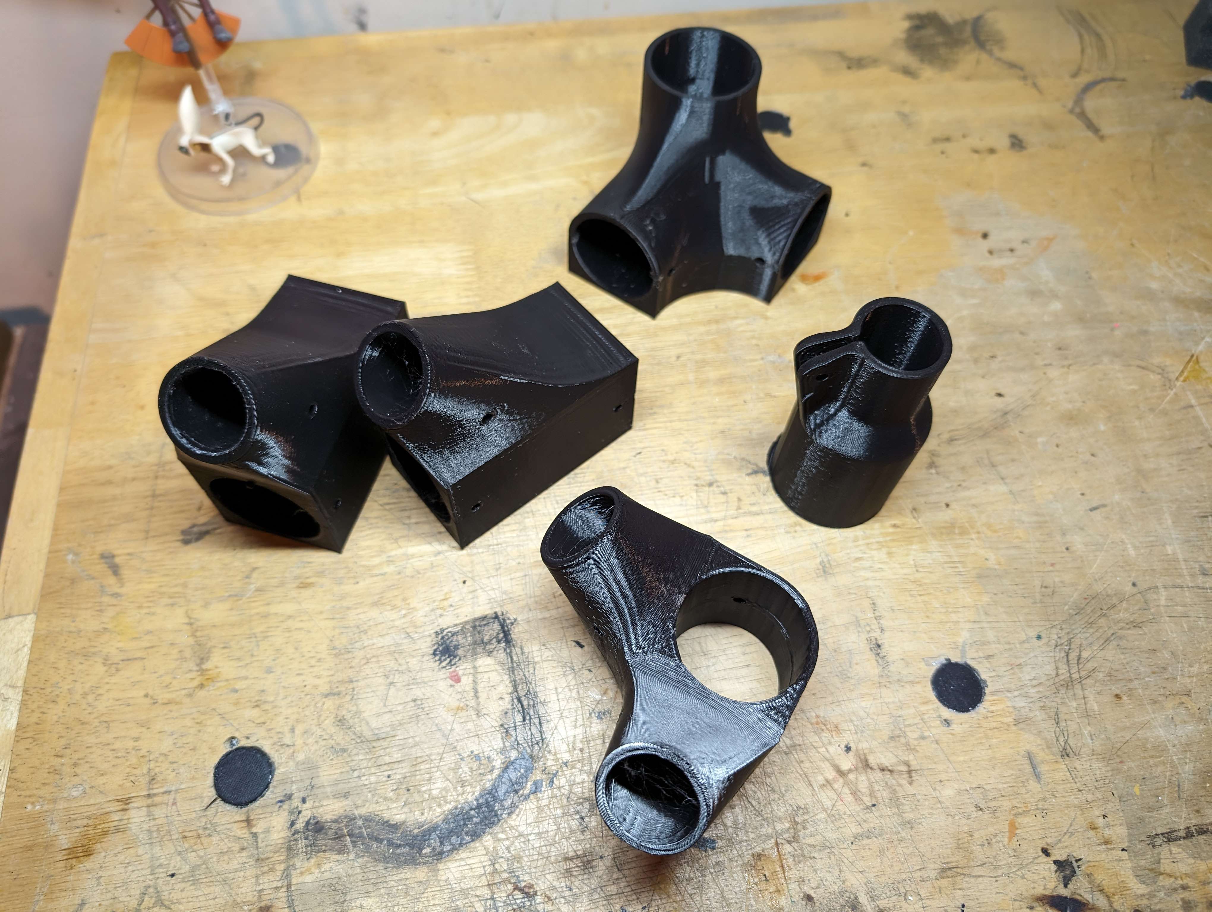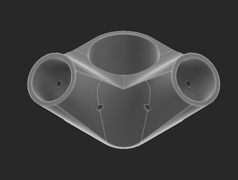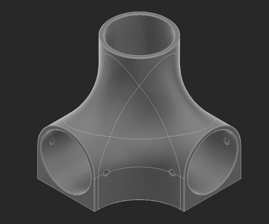 The base of the structure for this will be a triple PVC connector. I tried to find one at my local hardware store but couldn't for the 1 1/4" PVC I'm using for this, so I have to 3D print it.