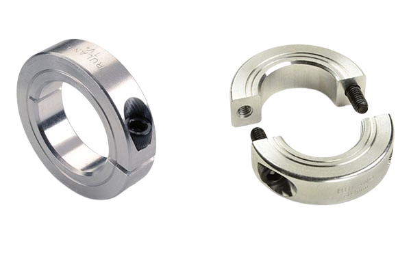 To keep the two stages together, I'd need to design something similar to a shaft collar. Some clamp around the shaft, and some dig a screw into the shaft to prevent movement.