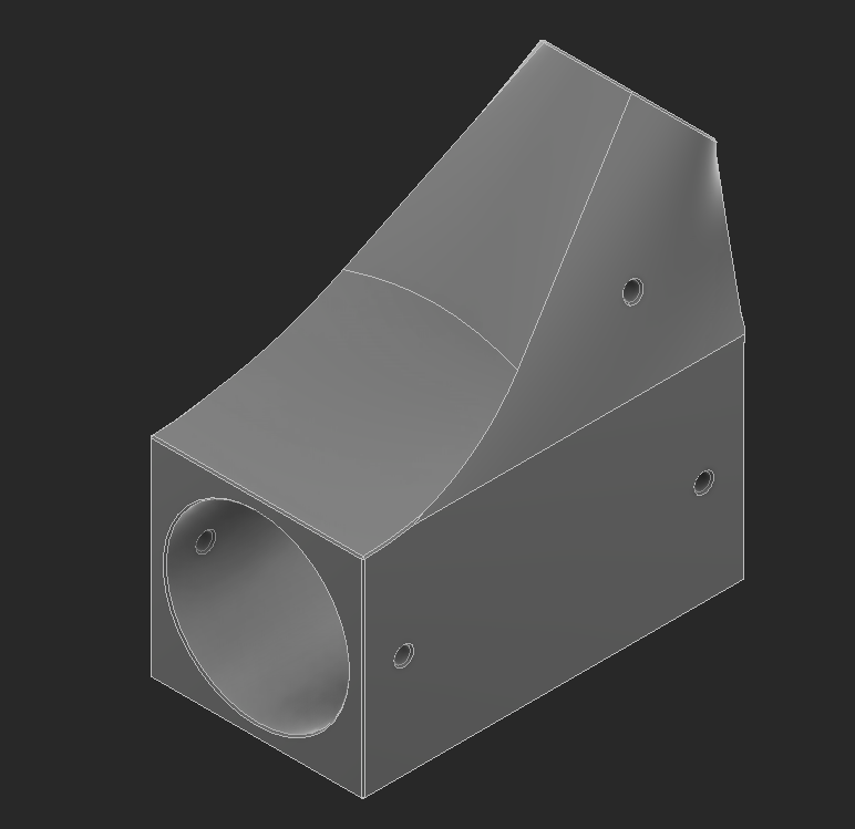 I designed a gusset to triangle brace the base stage of the telescope. This is a 45-degree angle, only because it makes this much easier to install by having 1 unique part. If this angle isn't enough, I can design 2 brackets to accomplish that.