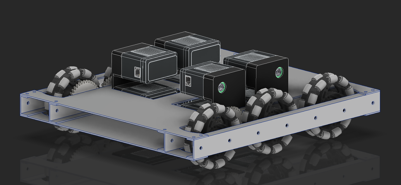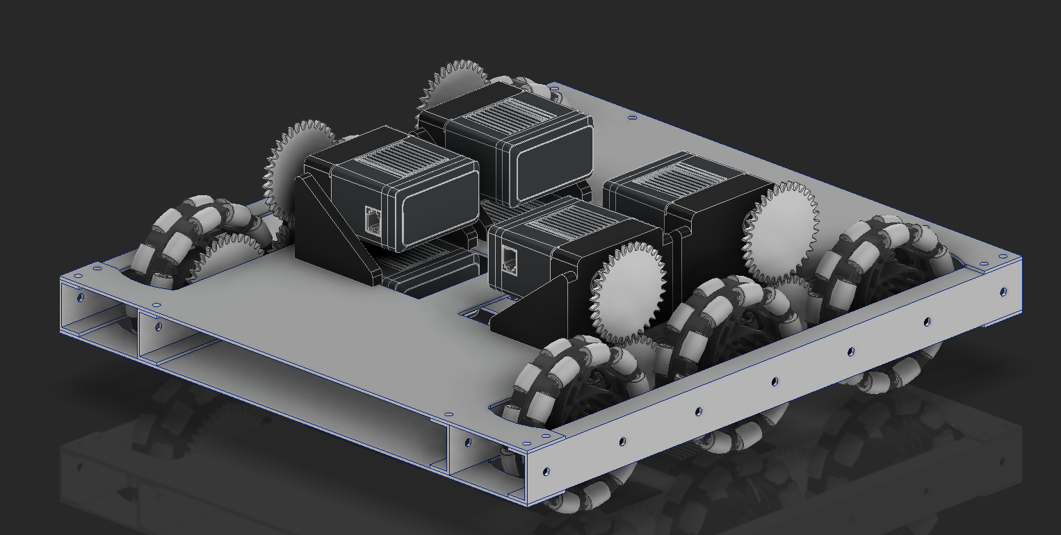 This is my first draft of figuring out where everything will go. I generated gears for the drive to let my 3.25" wheels go 510rpm, which has the robot moving at ~86"/s. The drive channels are 1" square tubes that I'll bandsaw down the middle The top and bottom plates are 1/16" aluminum that I'll order from Send cut Send.
