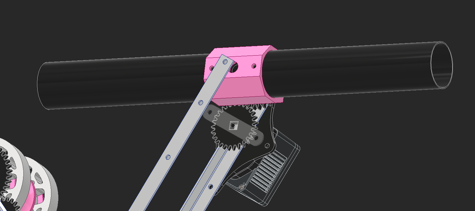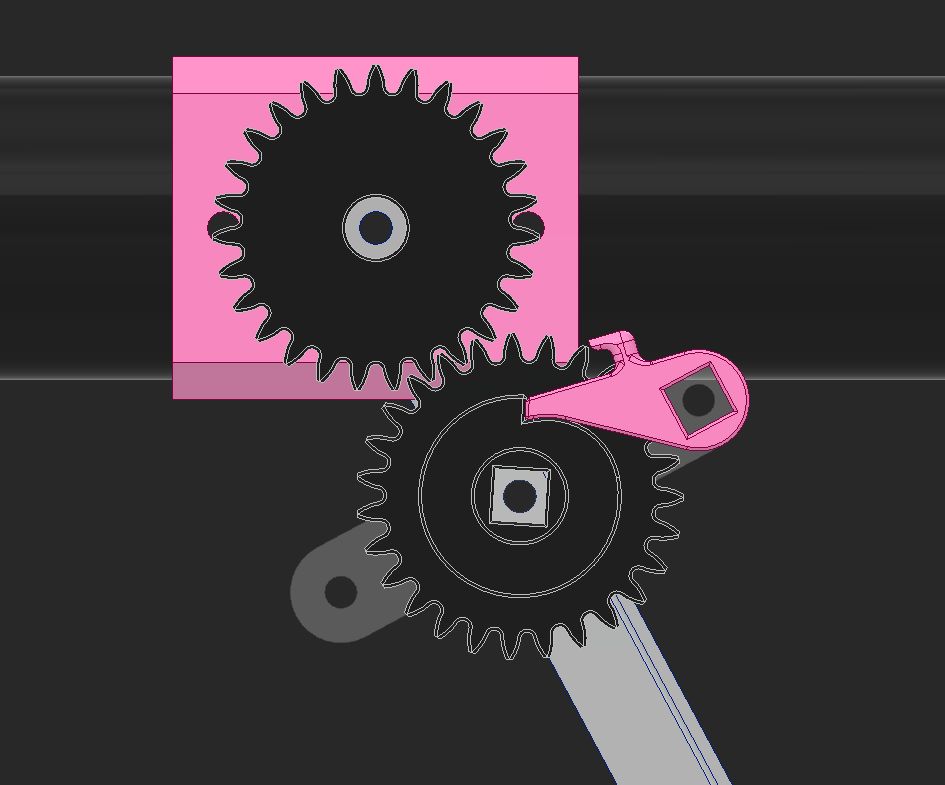 I designed a hub to hold 1/4" ID bushings for the tube, and I have the same interlocking geometry between the gear and the tube. This is geared 1:1 and will use a 600rpm motor.