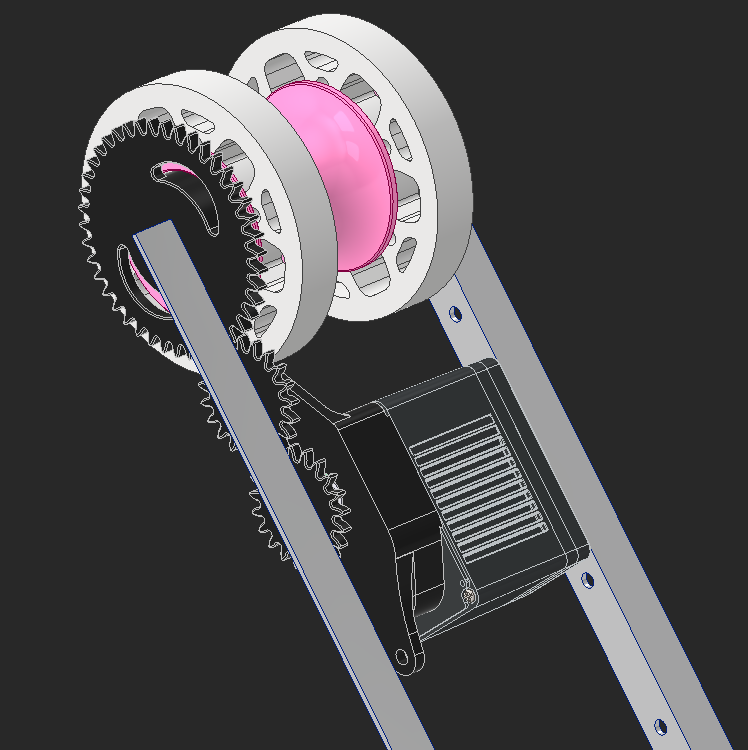 I added diagonals for the windmill and the roller mechanism. The roller will be a 3" flex wheel spinning at 50rpm. The windmill is a thin piece of nylon tube I found on McMaster, this will be very light and easy to spin up fast to block people from shooting discs.