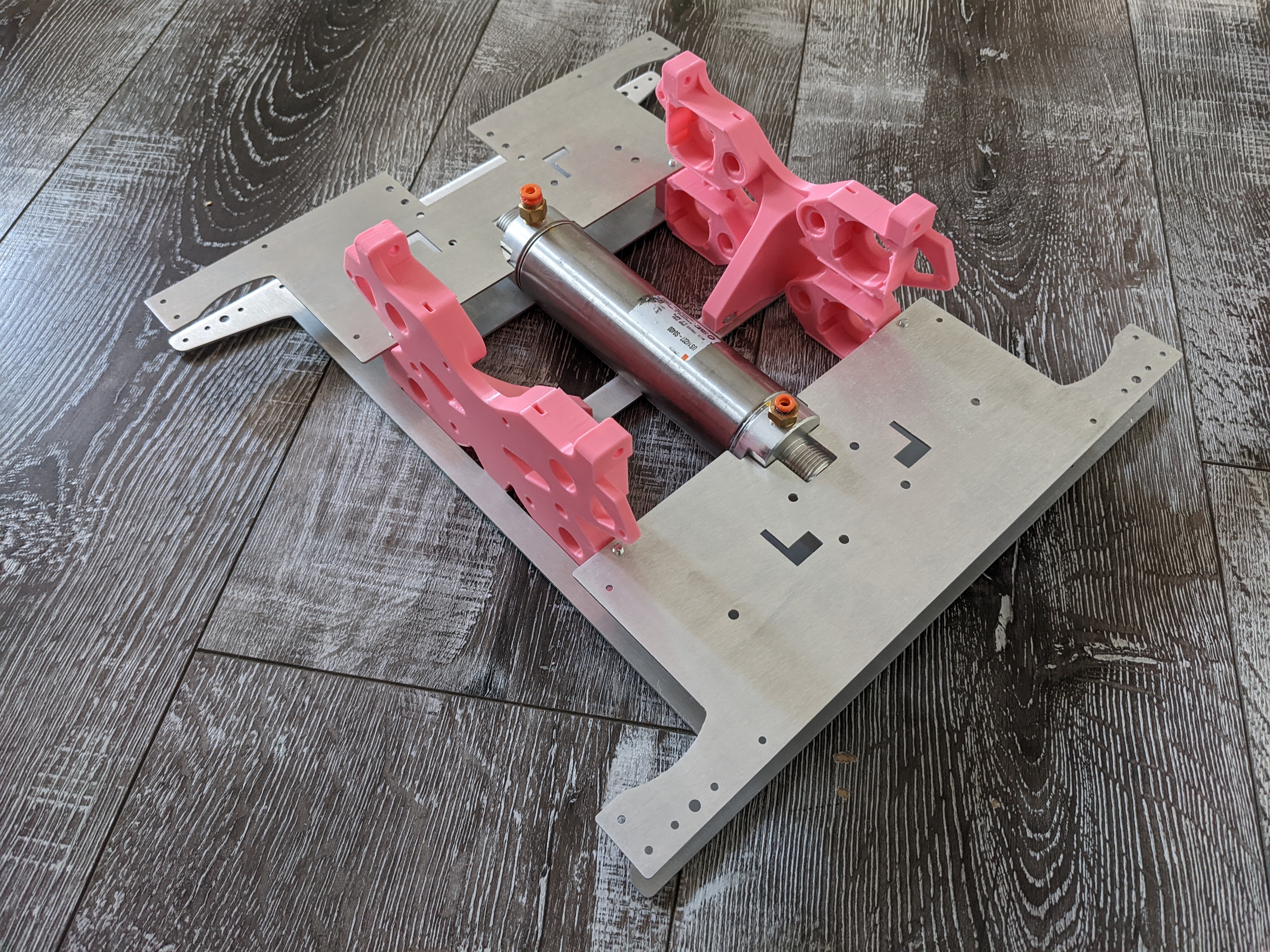 The first thing to do is design a mount for the lift to sit on, I made this out of 1/16" 6061 and mounted it through the roller.